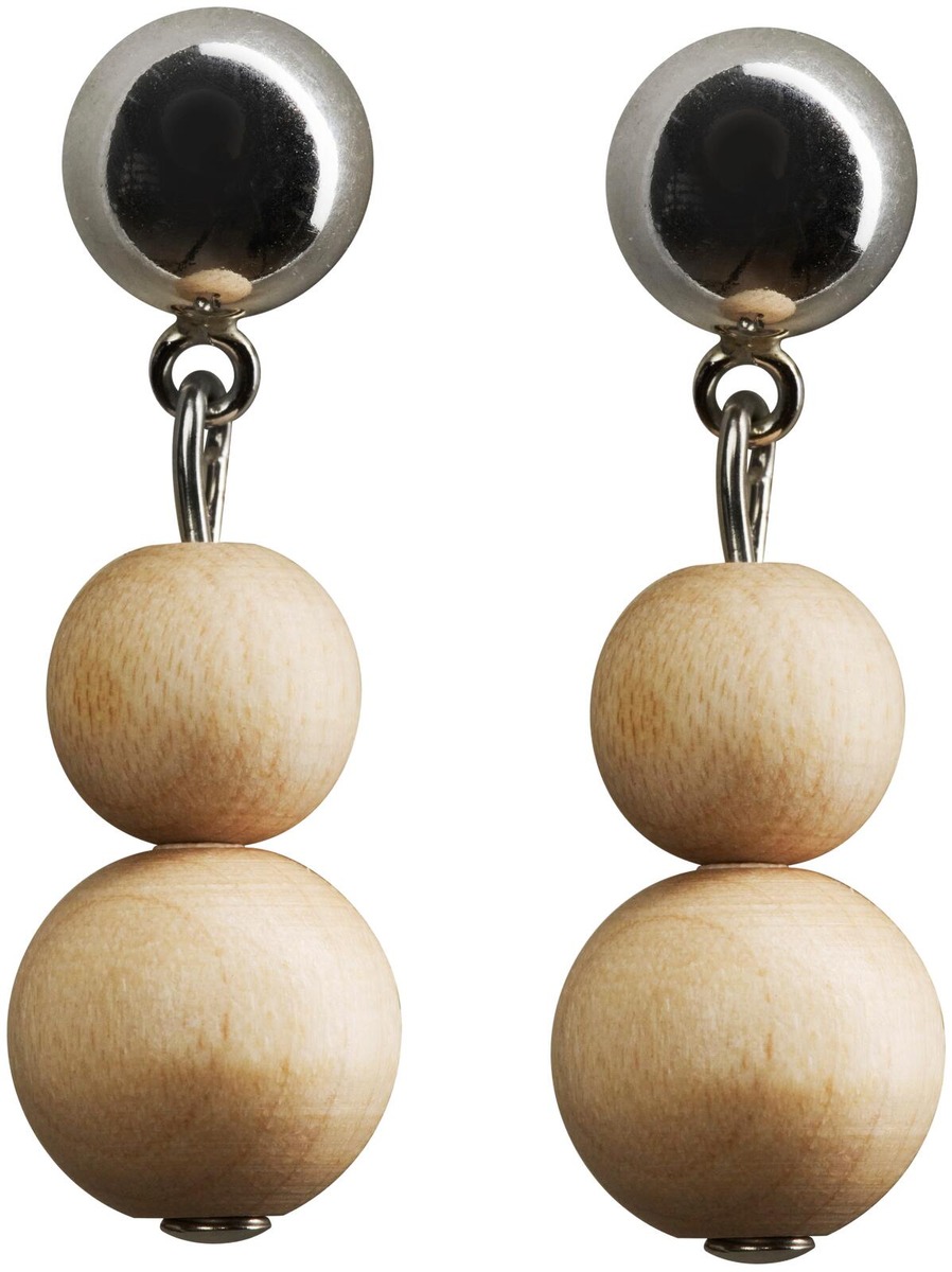 Olos-korvakoruissa on kaunis yhdistelmä käsinvärjättyjä puuhelmiä kauden väreissä sekä hohtavaa metallia. Pituus: 3 cm. Valmistettu käsityönä Suomessa.