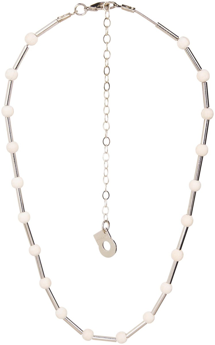 Mila-koruissa on tyylikkäästi yhdistetty metalliputkia ja puuhelmiä. Säädettävän kaulakorun pituus on 40-50 cm. Valmistettu käsityönä Suomessa.
