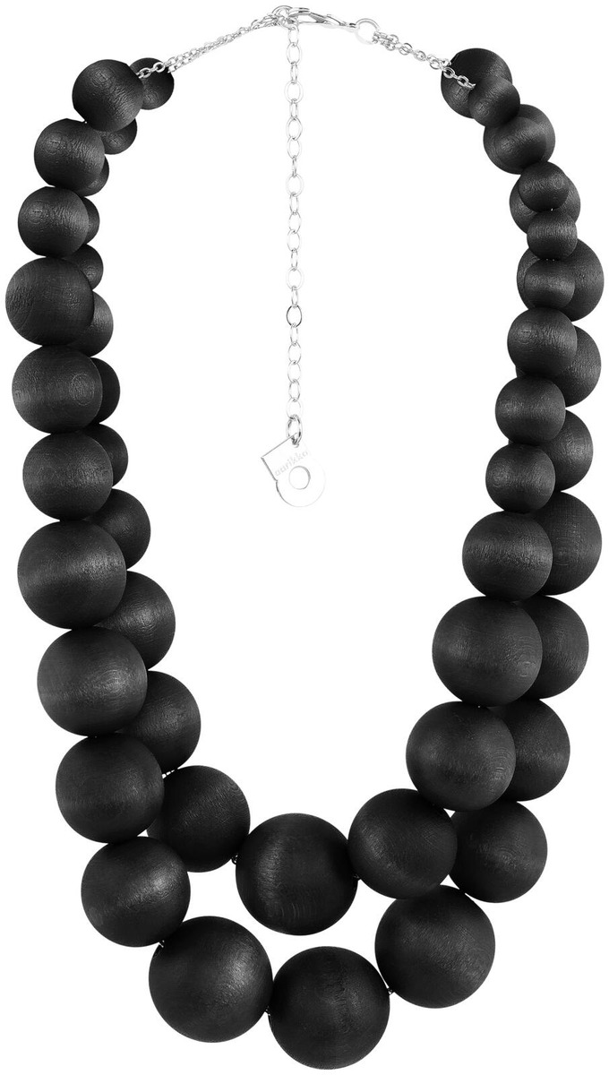 Asta-kaulakorussa on erikokoisia puuhelmiä kahdessa erillisessä ketjussa. Kaulakorun pituus on säädettävä, 40–50 cm. Valmistettu käsityönä Suomessa