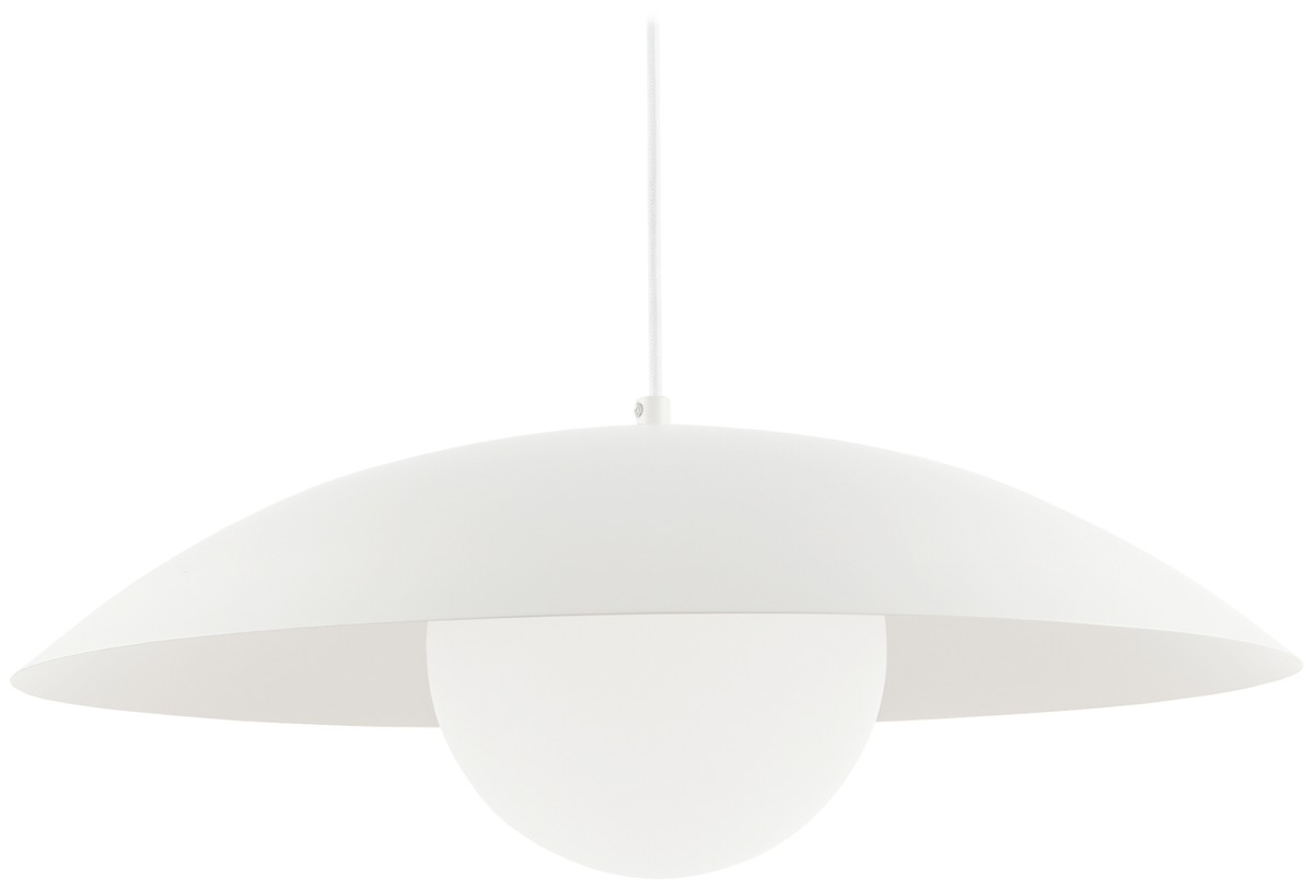 Japandi-henkistä pehmeää minimalismia. Muodoltaan kevyt ja veistoksellinen, jossa mattavalkoinen metallikupu kehystää opaalilasipallon. Valaisin sopii yhtä hyvin ruokailutilan keskipisteenä kuin olohuoneen sohvapöydän yläpuolella. Opaalilasi suodattaa valon pehmeäksi, häikäisemättömäksi kotoisaksi hehkuksi, metallilevyn ohjaten valoa pehmeästi alaspäin. Parhaan fiiliksen saat lämpimällä, himmennettävällä E27 2700 K -valonlähteellä.
