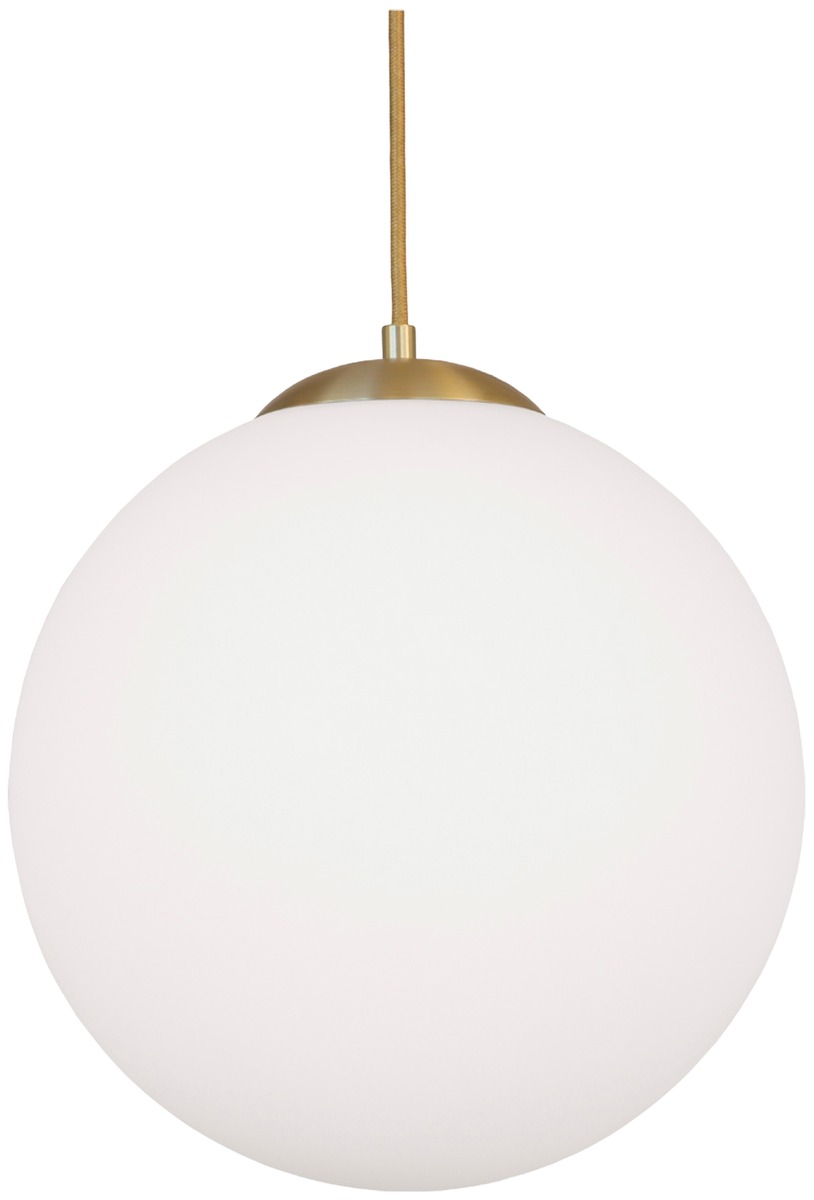 Mattalasinen riippuvalaisin mattamessinginvärisellä kannatinosalla. Lasinen kupu heijastaa pehmeää yleisvaloa tilaan. Helppo kiinnittää koukkukiinnitykseen ja kytkeä valaisinpistotulpalla.
