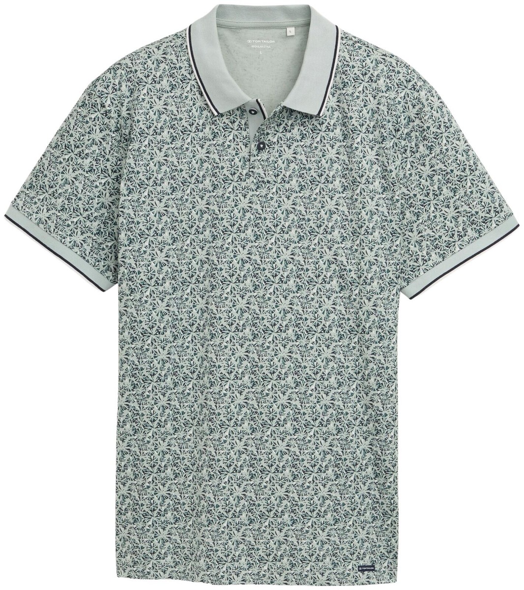 Miesten lyhythihainen kaulukselllinen t-paita painokuosilla. Kauluksessa ja hihansuissa raidat.