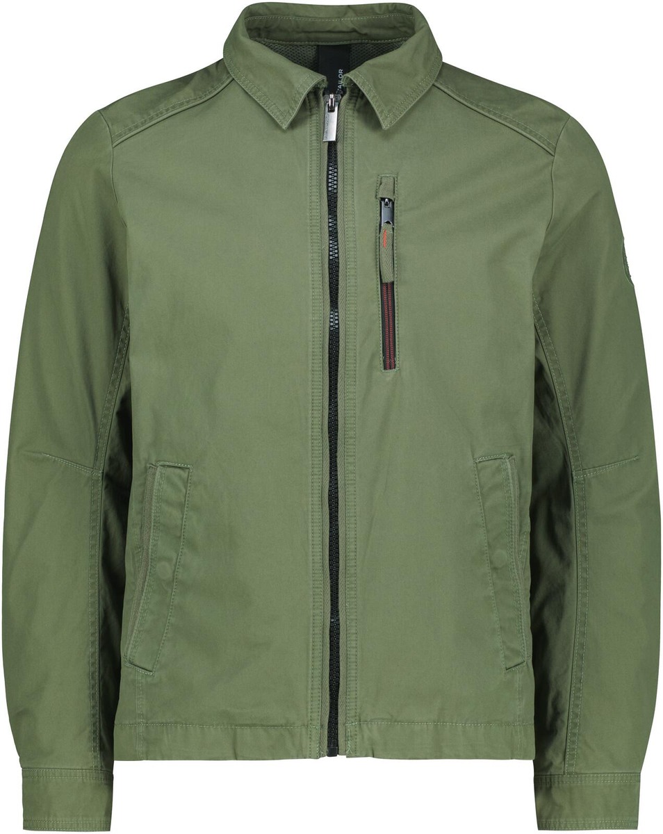 Miesten puuvillatakki. Vetoketju edessä, listataskut, suora helma. Rintatasku vetoketjulla.