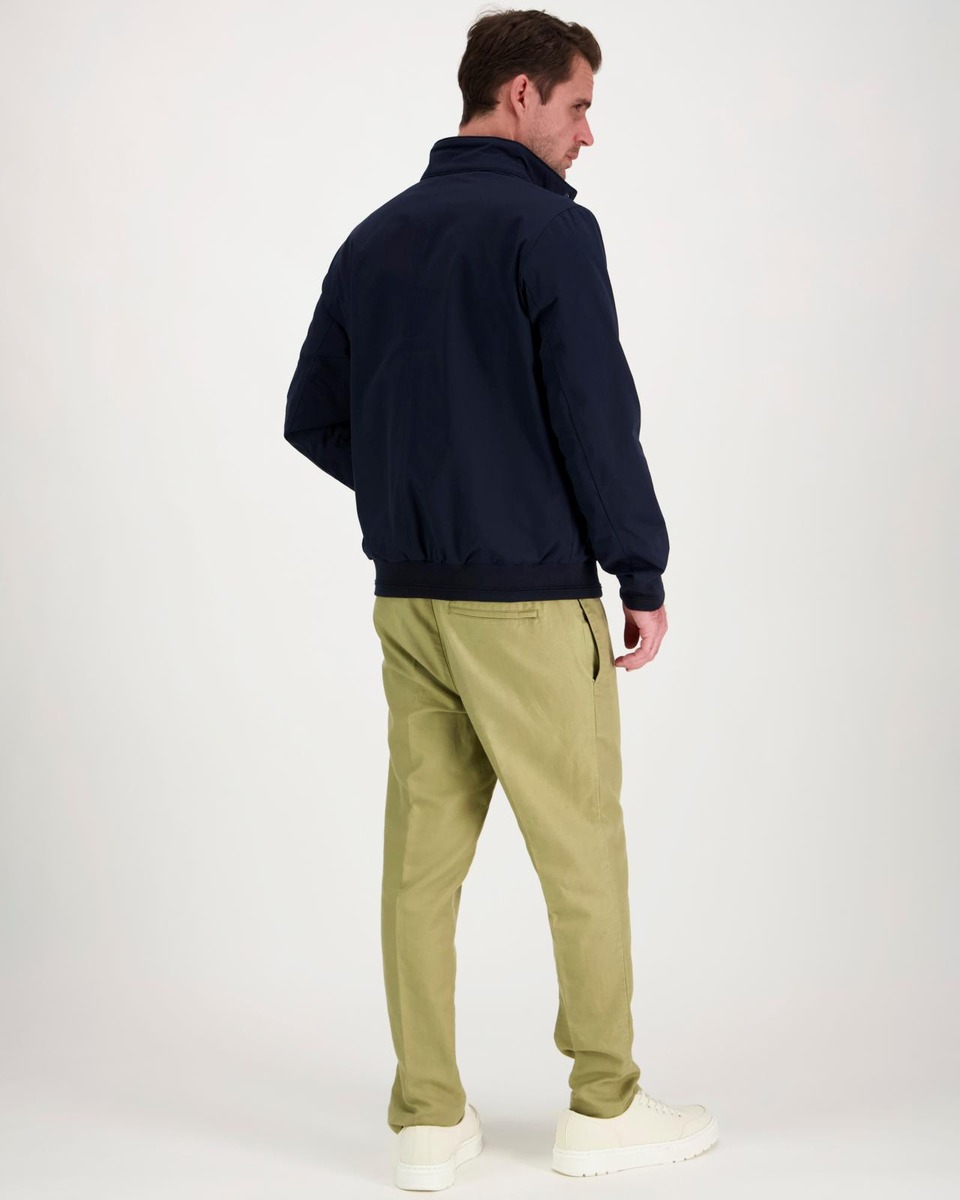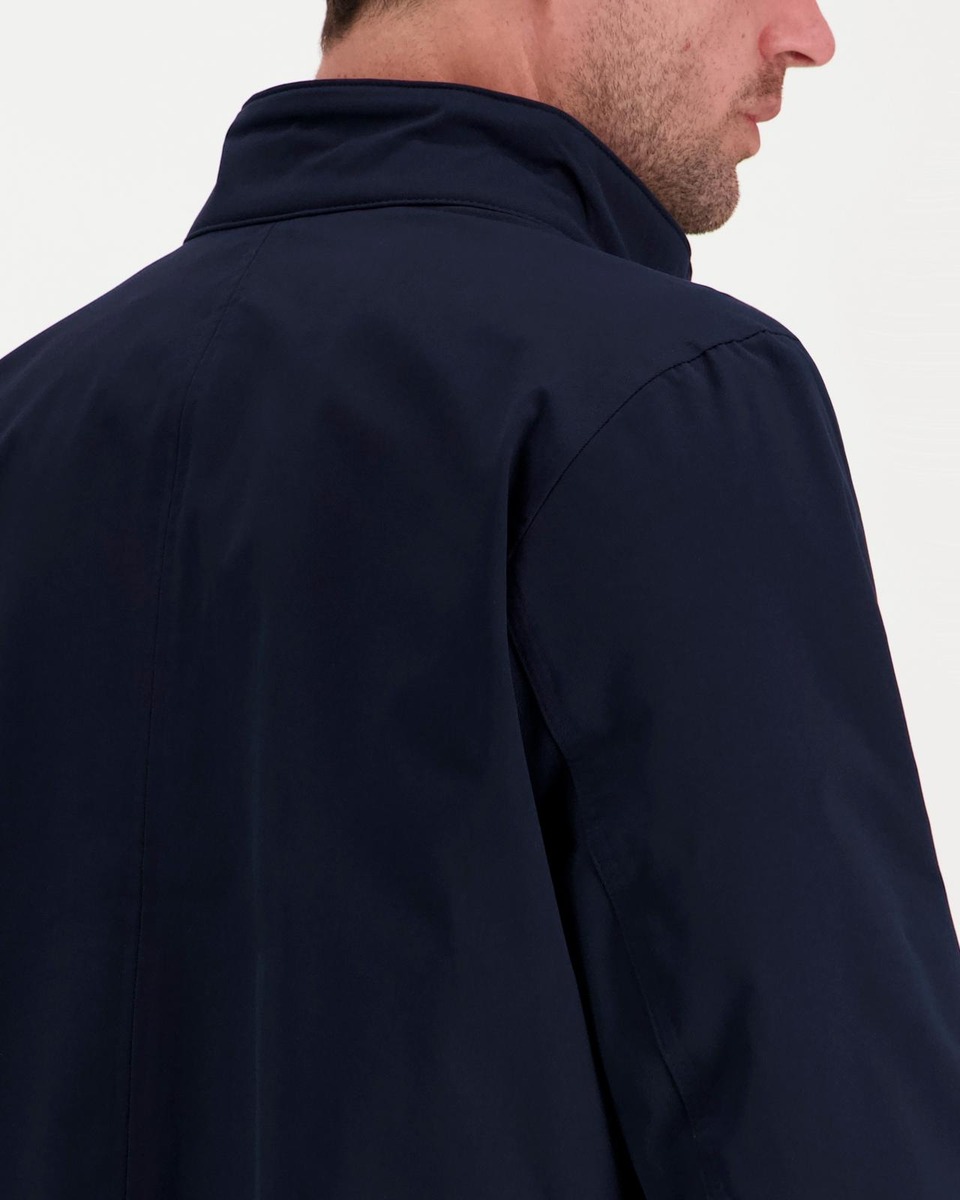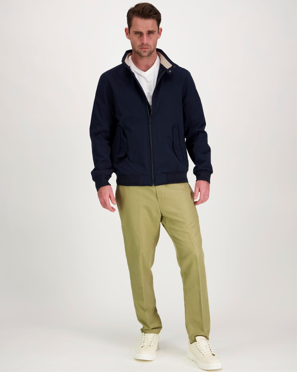 Miesten vettähylkivä vetoketjullinen harrington takki. Pystykaulus neppareillä, ohut kangasvuori, suljettavat taskun läpät. Helmassa ja hihansuissa resorit.