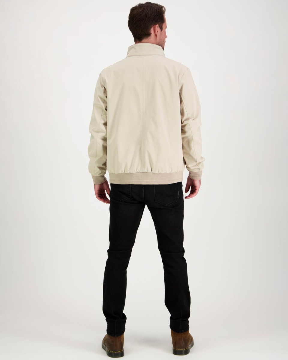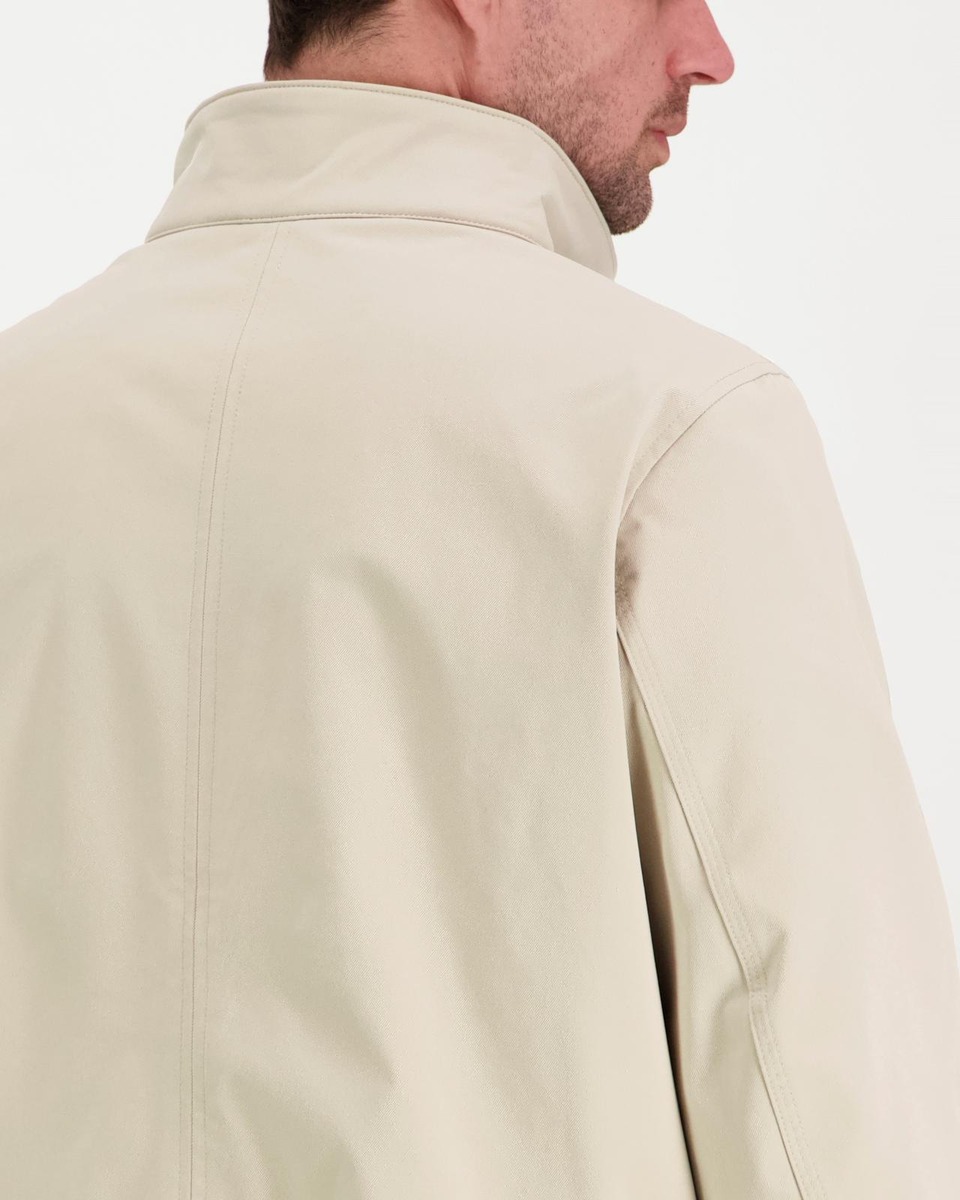 Miesten vettähylkivä vetoketjullinen harrington takki. Pystykaulus neppareillä, ohut kangasvuori, suljettavat taskun läpät. Helmassa ja hihansuissa resorit.