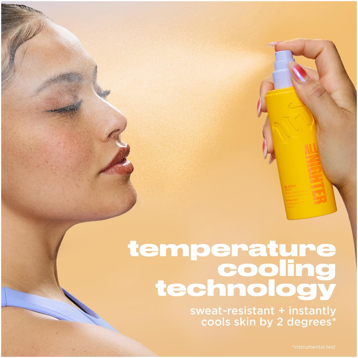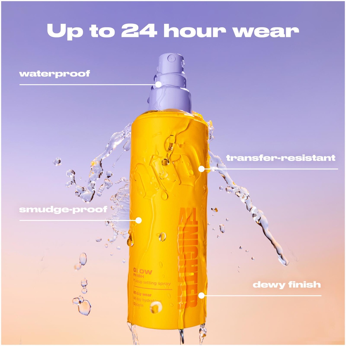 Tapaa täysin uusi All Nighter – viimeistelysuihke. Uusi koostumus ja upeampi pakkaus! Pysyy iholla jopa 24 tuntia, upean kosteutetulle ja hehkuvalle iholle. Ole voittamaton. Sano hyvästit meikkikatastrofeille! Muutama suihkaus riittää pitämään meikkisi täydellisenä ja vastalevityn näköisenä – koko päivän ja yön, ihotyypistä riippumatta. Me asetimme standardin viimeistelysuihkeille, ja nyt nostamme rimaa entisestään. Kevyt suihkeemme levittyy tasaisesti, viilentää ihoa 2 ºC** välittömästi ja pitää ihon kosteutettuna 8 tunnin ajan. All Nighter Glow on rikastettu glyseriinillä, goji-marjauutteella ja niasiiniamidilla, jotka tarjoavat 8 tunnin kosteutuksen sekä täyteläisen ja säteilevän hehkuvan ihon. EDUT 1. KESTÄÄ JOPA 24 TUNTIA* 2. MEIKKI NÄYTTÄÄ TÄYDELLISELTÄ 3. VEDENKESTÄVÄ 4. IHO NÄYTTÄÄ TÄYTELÄISEMMÄLTÄ 5. 8 TUNNIN KOSTEUTUS 6. HIENKESTÄVÄ 7. EI SOTKE TAI TAHRAA 8. KIINNITTÄÄ MEIKKISI 9. TEKEE HUOKOSISTA VÄHEMMÄN NÄKYVIÄ 10. SOPII KAIKILLE IHOTYYPEILLE 11. ESTÄÄ MEIKKIÄ HALKEILEMASTA 12. EI TAHMATA 13. EI JÄTÄ JÄLKIÄ 14. IHO TUNTUU RAUHOITTUNEELTA 15. HÖYHENENKEVYT 16. VIILENTÄÄ IHOA VÄLITTÖMÄSTI 2 ºC** 17. PLUMP- JA GLOW-LOPPUTULOS 18. SISÄLTÄÄ GLYSERIINIÄ, GOJI-MARJAUUTETTA JA NIASIINIAMIDIA 19. USKOMATTOMAN MIELLYTTÄVÄ 20. MIKROHIENO SUIHKE 21. PARANTAA IHON RAKENNETTA NIASIINIAMIDIN AVULLA 22. EI TEE MEIKISTÄ "KAKKUMAISTA" 23. ESTÄÄ MEIKKIÄ HAALISTUMASTA 24. ANTAA IHON HENGITTÄÄ *itsearviointi, N=102 **instrumentaalinen testi