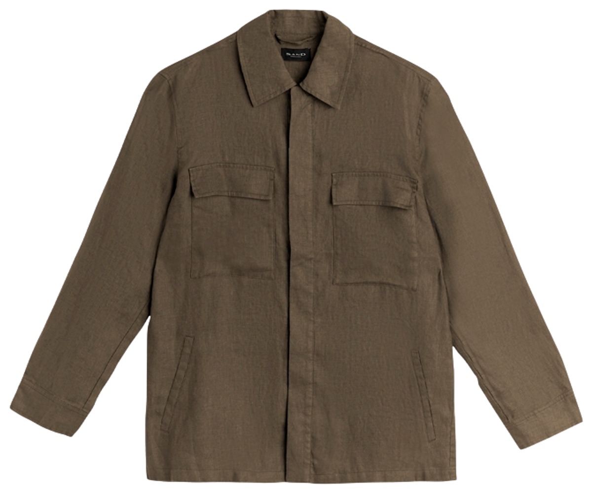 Pellavainen paitatakki, jossa edessä piilonapitus. Rinnassa läpälliset paikkataskut. Sivuilla upotetut taskut.