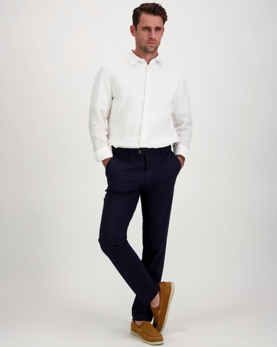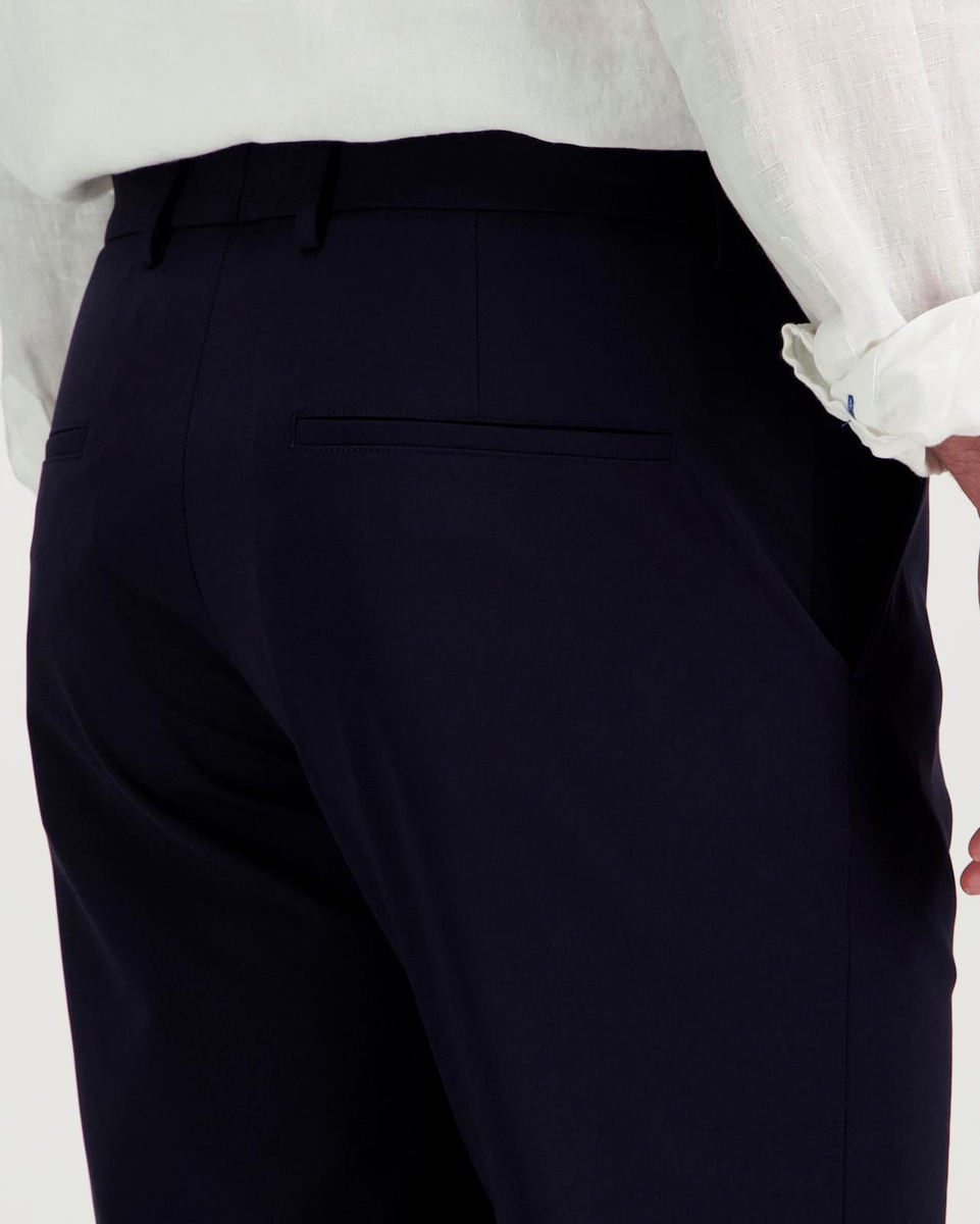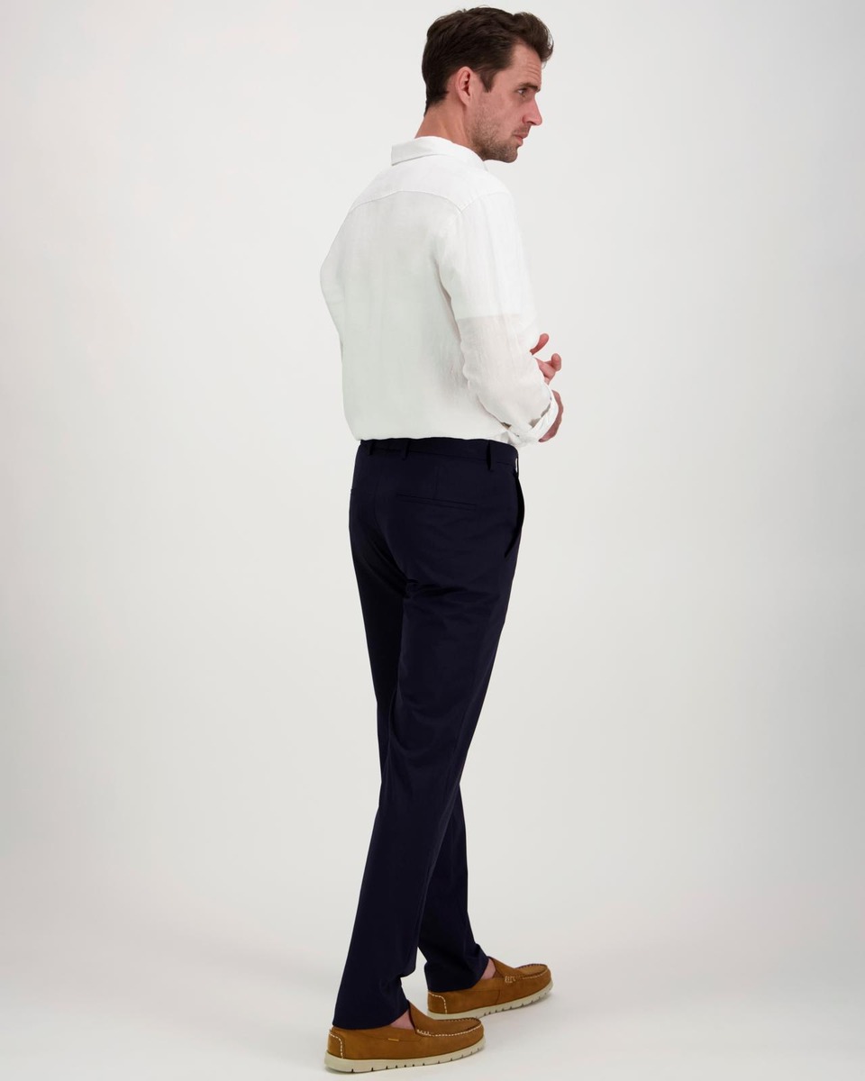 Kapealinjaiset housut suoralla lahkeella. Edessä vetoketjukiinnitys, hakanen ja neppari. Sopii yhdistettäväksi bleiserin tai rennon paidan kanssa.