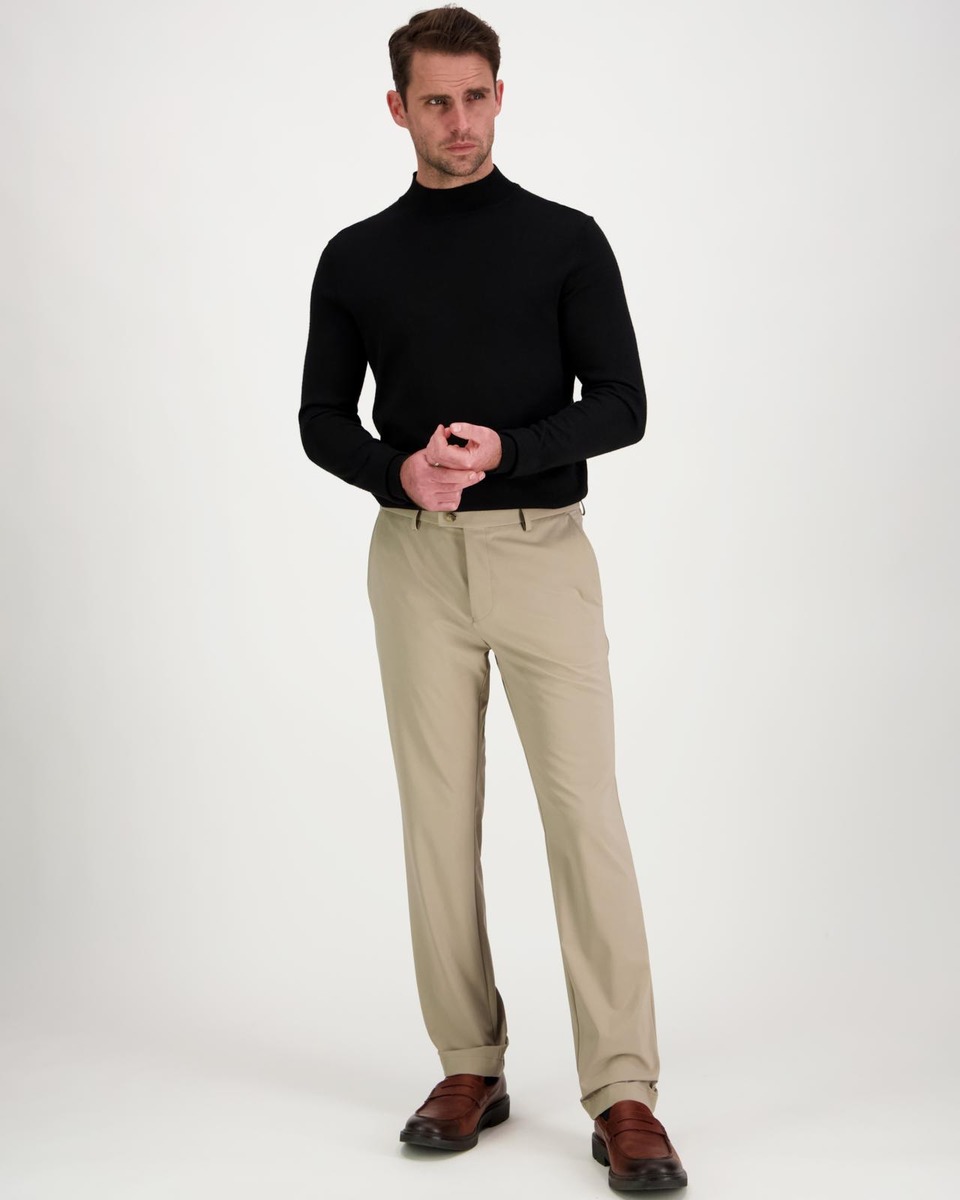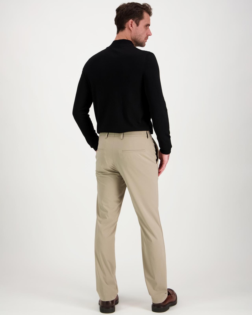 Kapealinjaiset housut suoralla lahkeella. Edessä vetoketjukiinnitys, hakanen ja neppari. Sopii yhdistettäväksi bleiserin tai rennon paidan kanssa.
