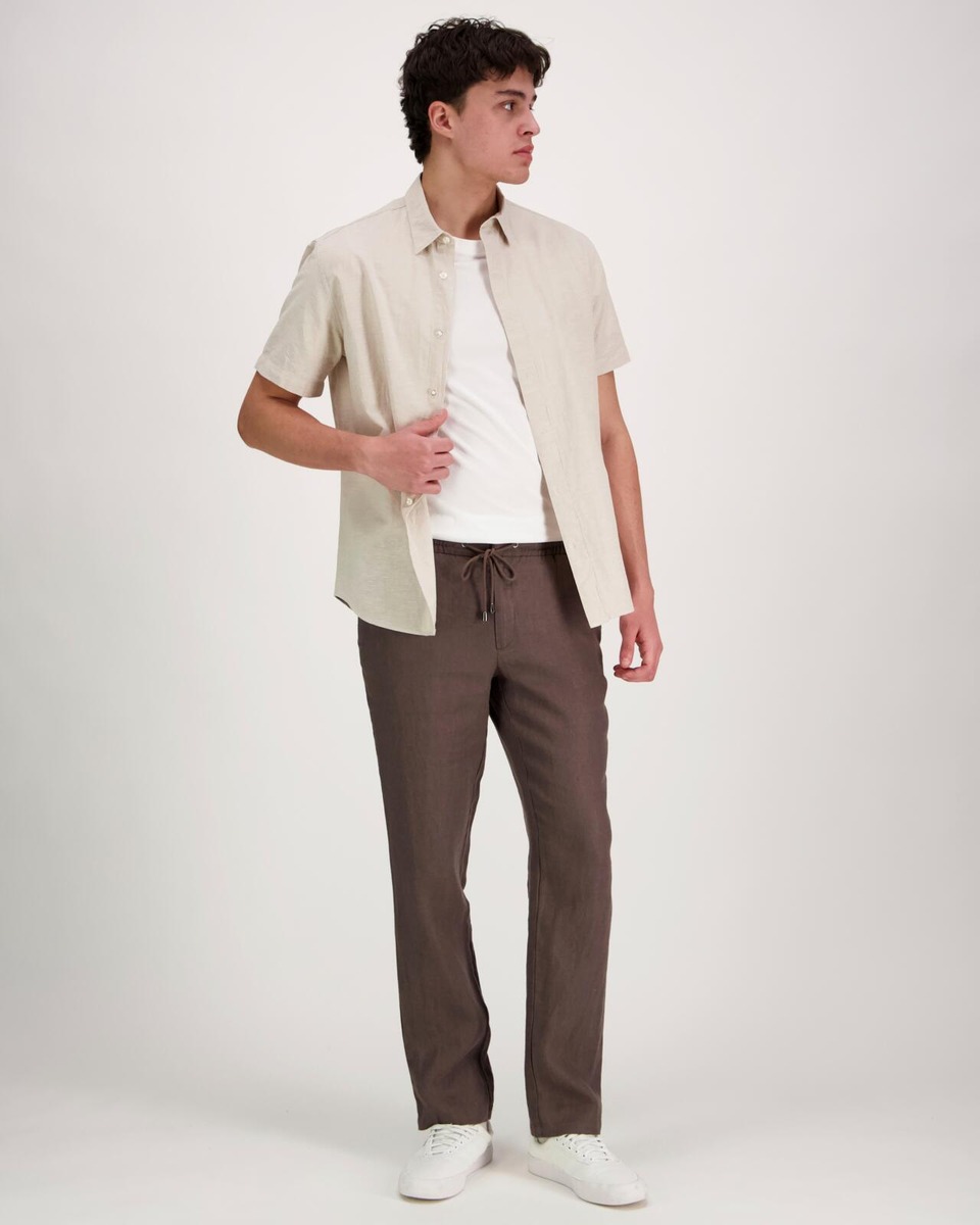 Regular fit -housut joustavalla kiristysnyörivyötäröllä. Kaksi etutaskua.