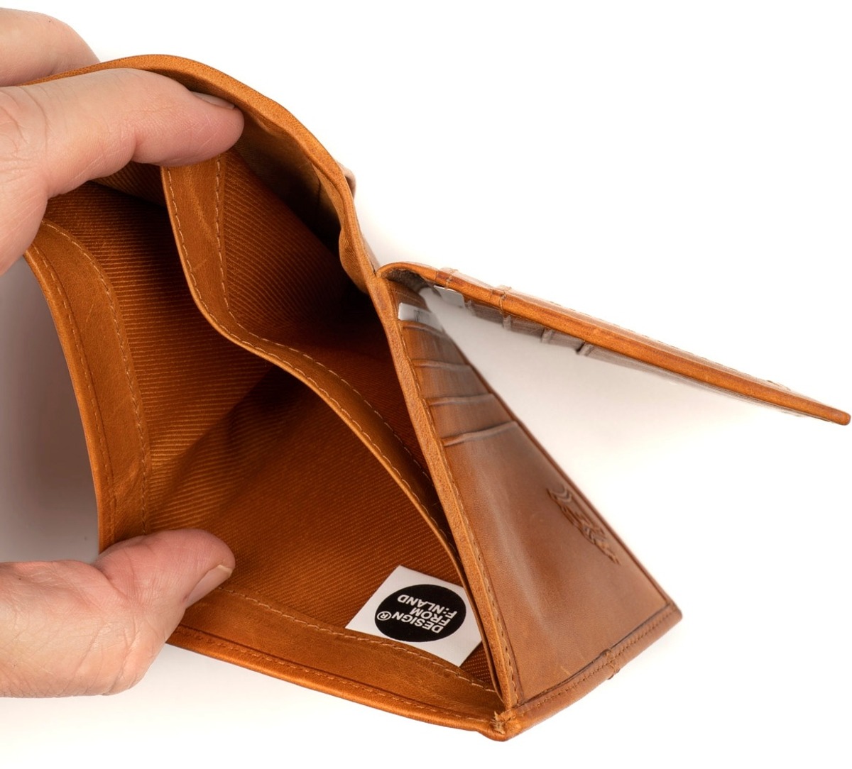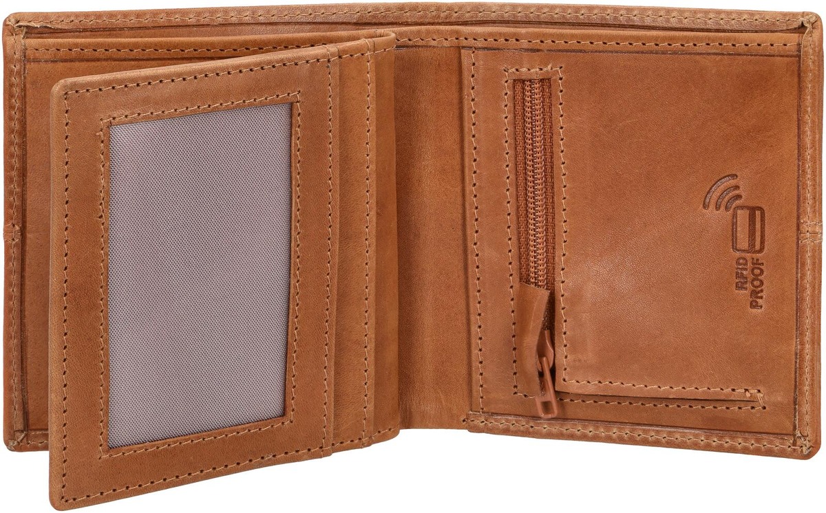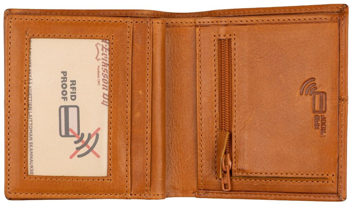 Näppärä pieni nahkalompakko kymmenellä korttipaikalla sekä vetoketjullisella kolikkotaskulla. Yksi korttipaikoista on ikkunallinen. Lompakon taustalla on kaksiosainen seteliväli. Lompakossa on RFID-suojaus, joka estää sirullisen etäluettavien korttien etäluvun.