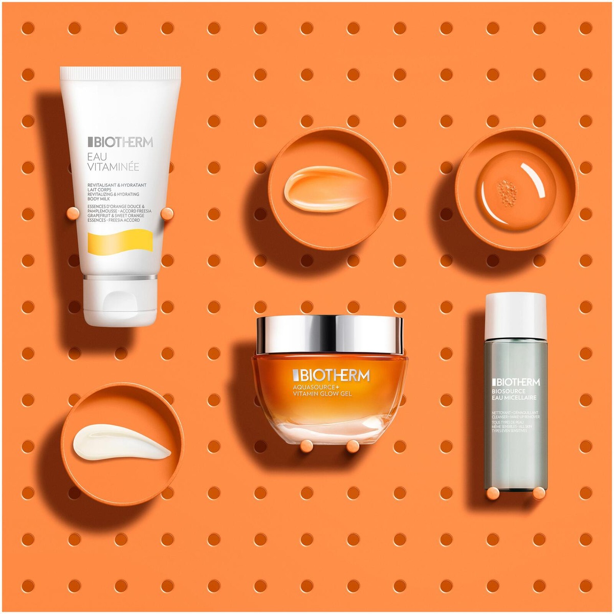 Puhdista & valmistele: Pyyhi Biomains Eau Micellaire -puhdistusvedellä kasvot, silmät ja huulet vanulapulla puhdistaaksesi ihon, luoden raikkaan pohjan. Tehosta kasvojen hehkua: Levitä pieni määrä Aquasource+ Vitamin Glow Gel -geeliä puhtaalle kasvojen ja kaulan iholle, hiero hellästi intensiivisen kosteutuksen ja näkyvän hehkun saamiseksi. Kosteuta vartaloa: Suihkun jälkeen tai tarvittaessa levitä Eau Vitaminée Body Milk runsaasti koko vartalolle, anna ravitsevan koostumuksen imeytyä pehmeän ja kosteutetun ihon saavuttamiseksi.