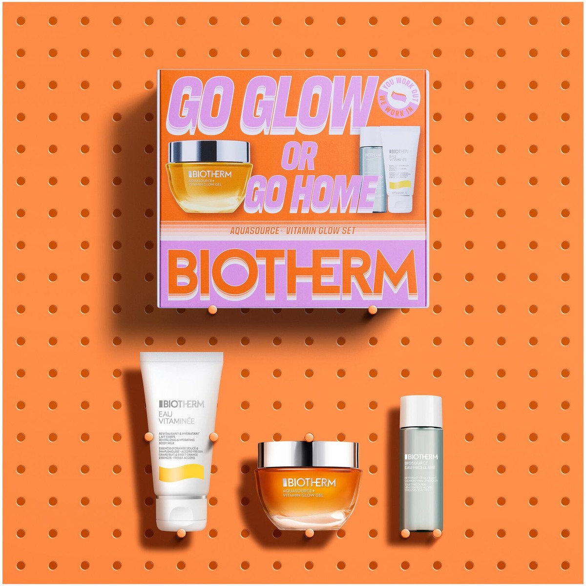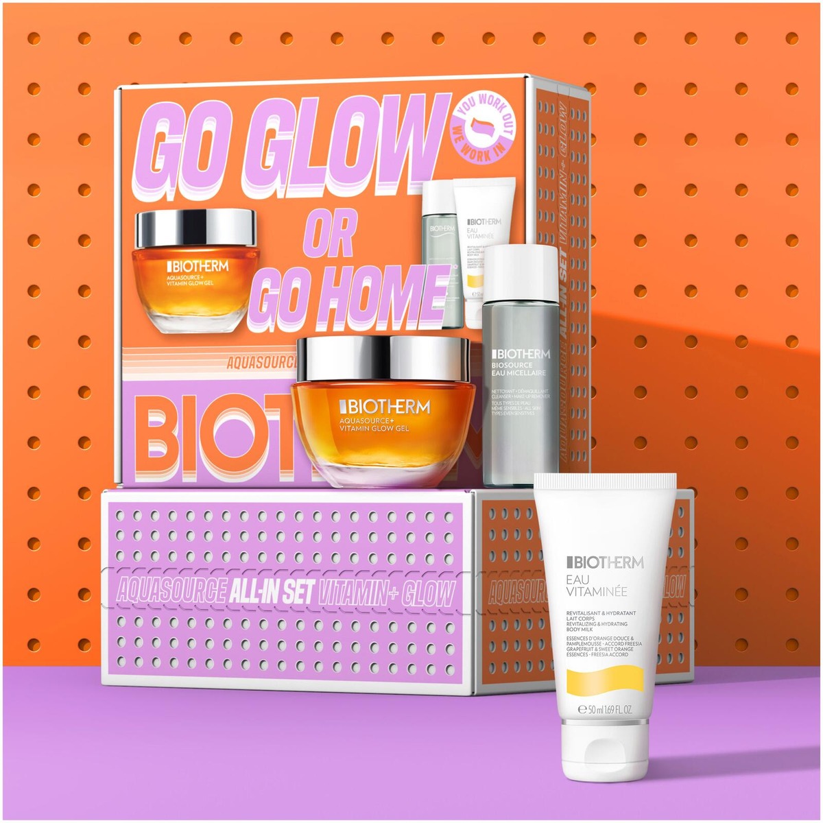 Biotherm Aquasource Vitamin Glow Set 2026 sisältää Aquasource+ Vitamin Glow gel 50ml, Biosource Eau Micellaire 30ml ja Eau Vitaminée Body Milk 50ml. - AQUASOURCE VITAMIN GLOW GEL 50ML: 5% vitamiinipitoinen kosteusvoide antaa hehkuvan ihon vain 2 viikossa*. Raikas sitrustuoksu herättää ihon levityksen yhteydessä ja antaa vitamiiniboostin. Aistillinen, kevyt koostumus jättää iholle näkymättömän pinnan. 95 %* tuotetta testanneista koki, ettei koostumus jättänyt rasvaista kalvoa iholle, mikä antaa luonnollisen hehkun ja antaa ihon hengittää. Nopea imeytyminen kosteuttaa ihoa ensimmäisestä käyttökerrasta lähtien***. *Kliininen arviointi 41 henkilöä, 29 päivän käytön jälkeen **Itsearviointi 55 naista, 56 päivän jälkeen. ***Instrumentaalinen testi. - BIOSOURCE EAU MICELLAIRE 30ML: Biotherm Biosource Eau Micellaire Water Cleanser on puhdistusvesi ja meikinpoistaja yhdessä, joka puhdistaa ihon ja poistaa meikin. Sopii kaikille ihotyypeille, myös herkälle iholle. - EAU VITAMINÉE BODY MILK 50ML: Biotherm Eau Vitaminée Body Lotion on kosteuttava vartalovoide, joka sopii kaikille ihotyypeille. Kosteuttava voide energisoivalla tuoksulla jättää ihon intensiivisesti kosteutetuksi ja sileäksi, ilman rasvaista tunnetta. Raikas ja energisoiva tuoksu viestii hyvinvoinnista, energiasta ja ilosta.