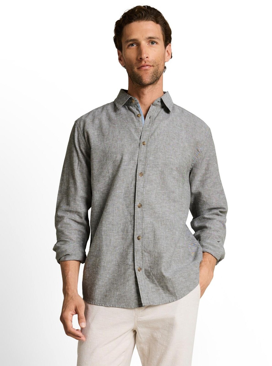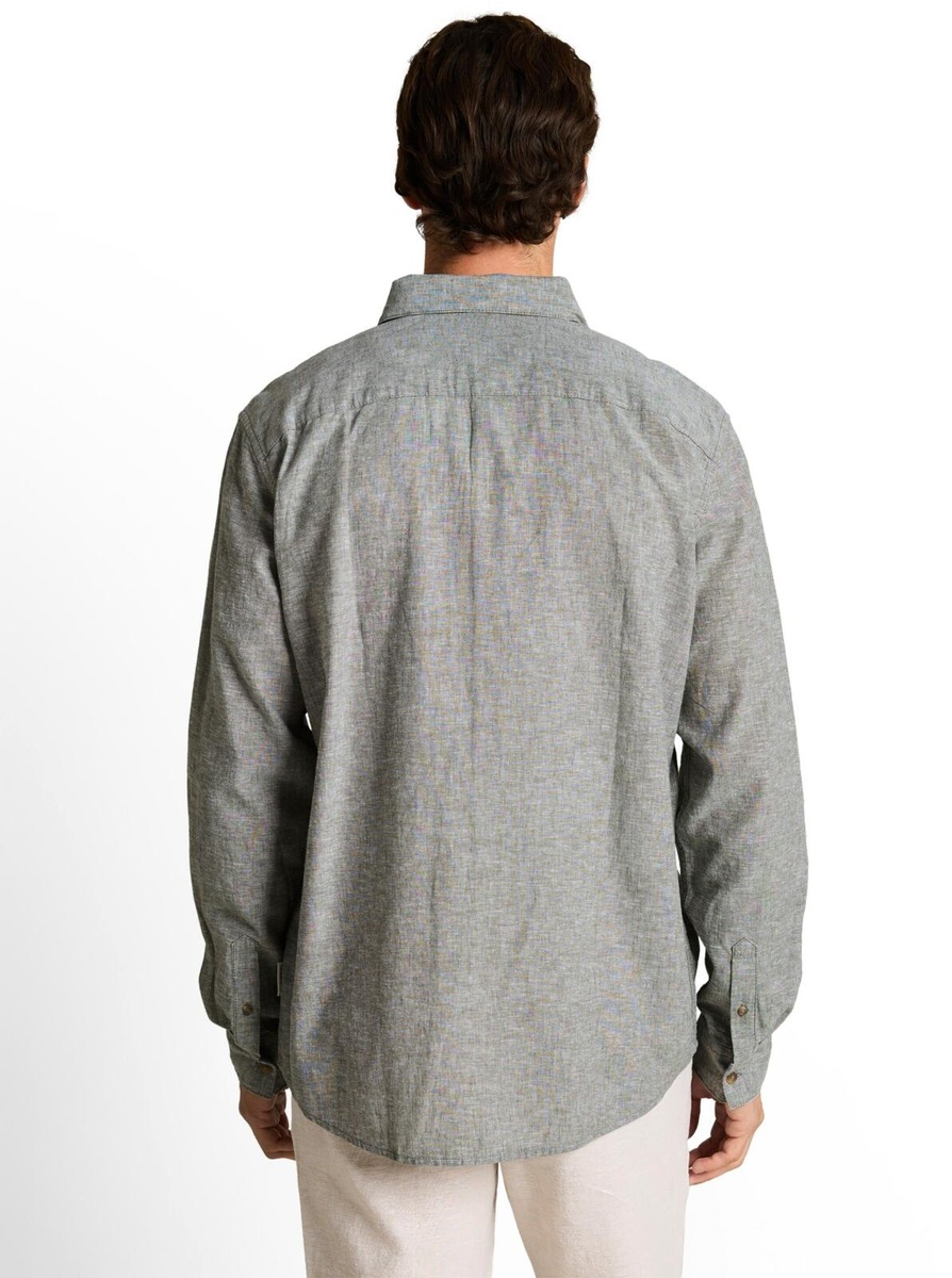 Miesten pitkähihainen kauluspaita. Normaalimitoitus. Materiaalina miellyttävä pellava-puuvilla. Valmistuksessa käytetty sertifioitua European Flax™-pellavaa.