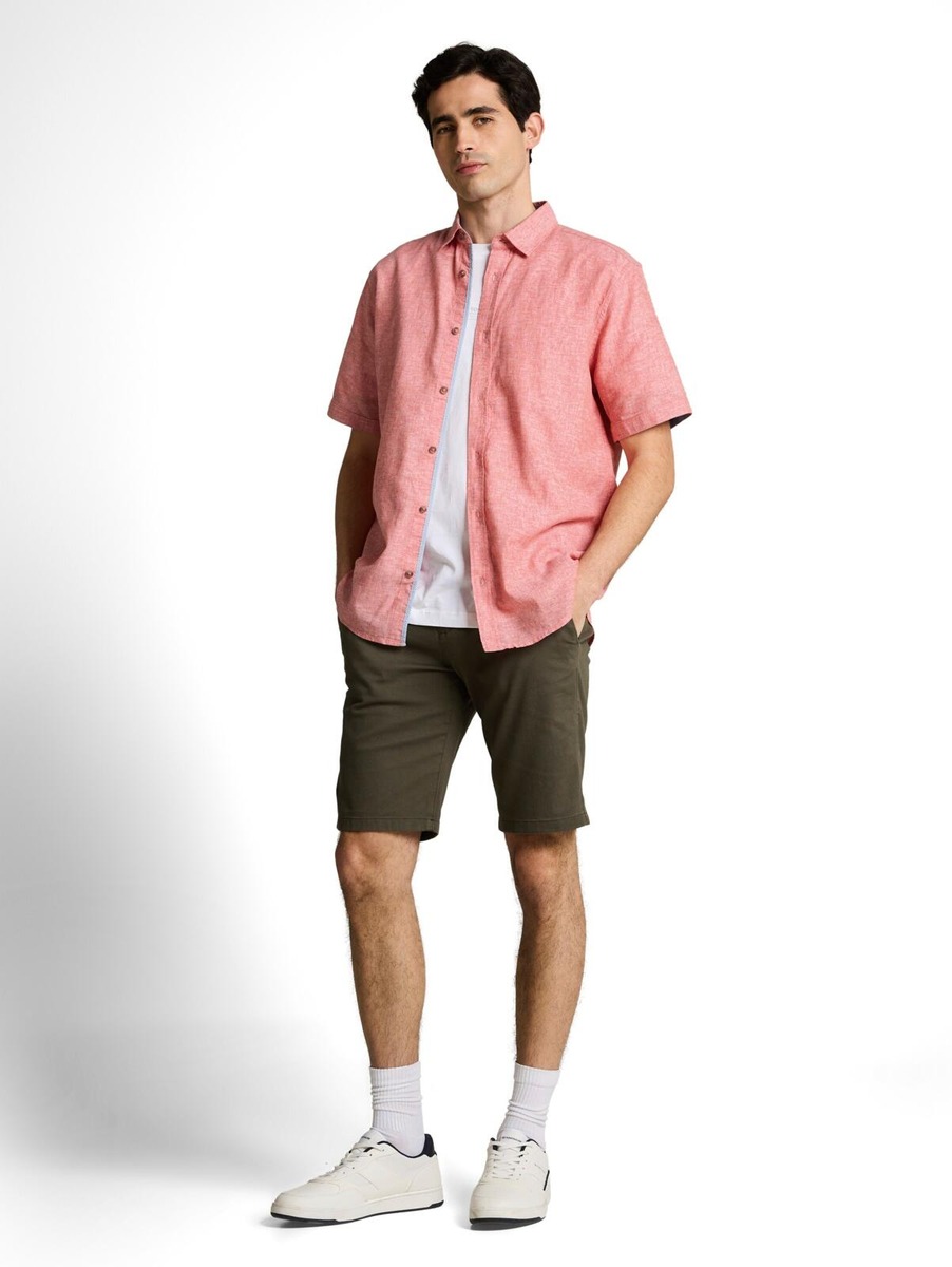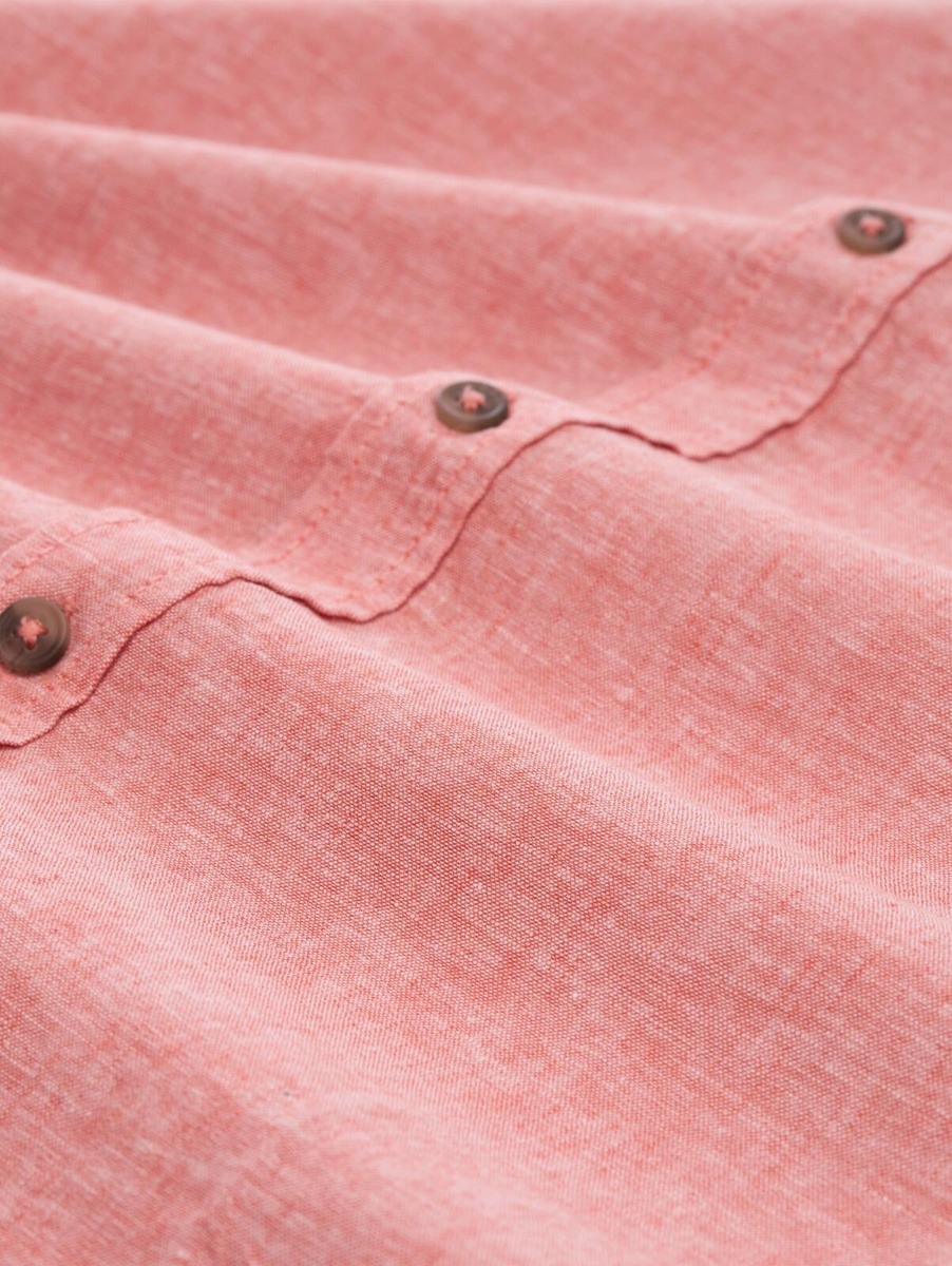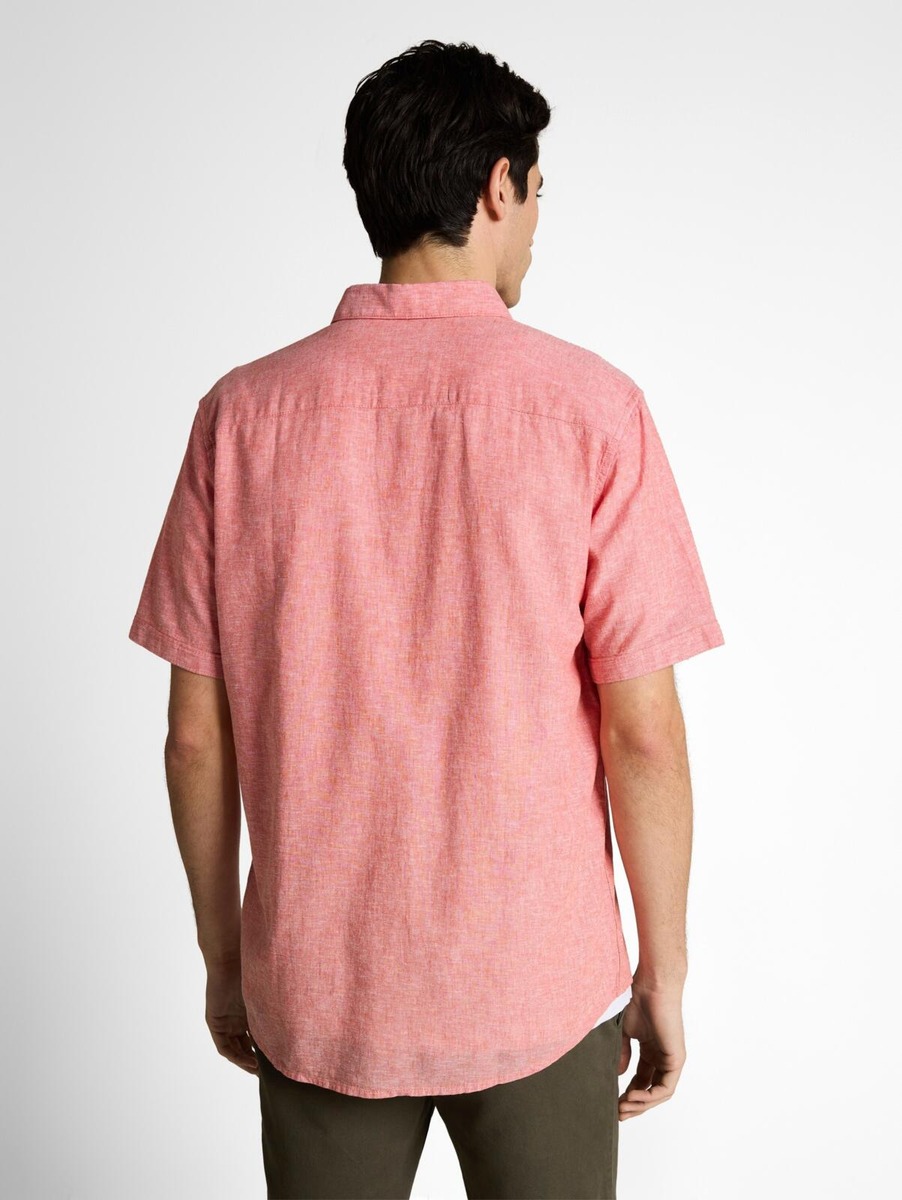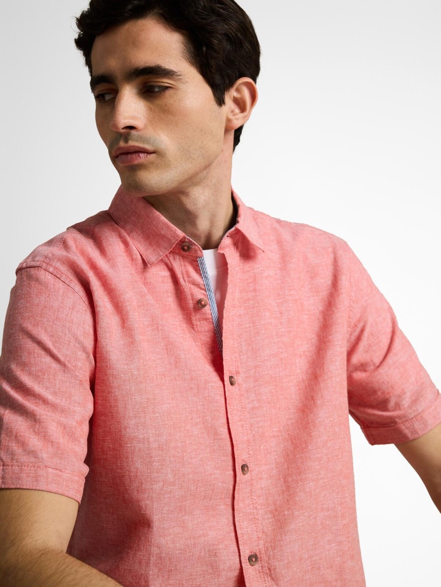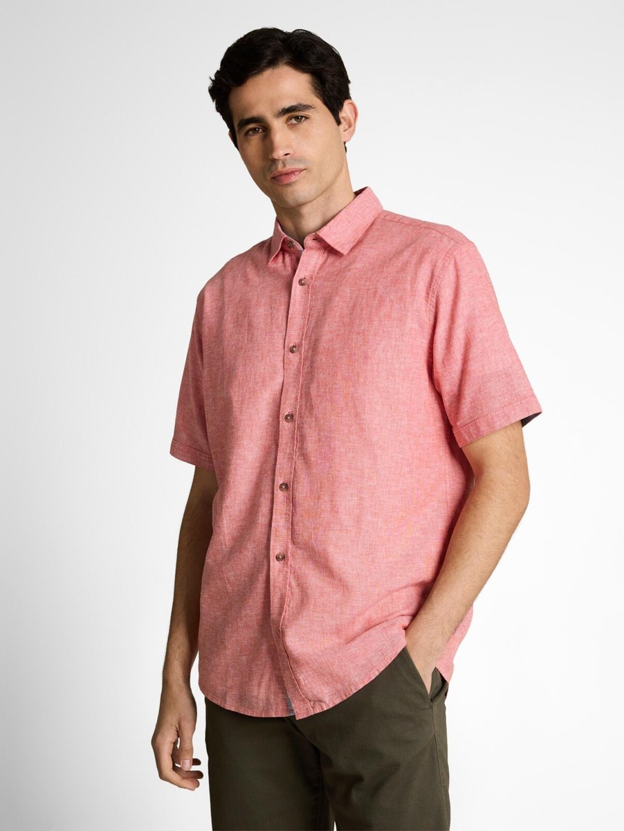 Miesten lyhythihainen kauluspaita. Niskassa ja hihan alavarassa tehosteväri. Materiaalina ilmava pellava-puuvilla. Valmistuksessa käytetty sertifioitua European Flax™-pellavaa.