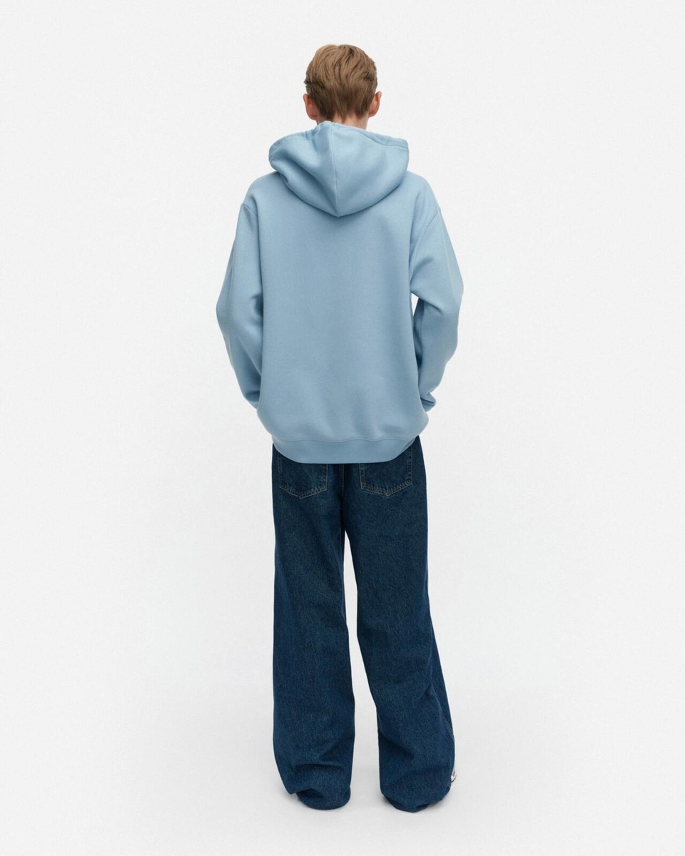 Runoja-hupparissa on rento istuvuus ja unisex-mitoitus. Etupuolelle on painettu suuri Unikko-kukka, hupussa on solmimisnauhat ja hihansuissa sekä helmassa on leveät resorit. Tuote on valmistettu puuvillacollegesta, joka sisältää 80 % luomupuuvillaa ja 20 % kierrätettyä polyesteria. Luovuutta ja rohkeutta symboloiva Unikko syntyi aikana, jolloin Marimekon kuviomaailmaan ei juuri kuulunut kukkia. Maija Isolaa kukka-aihe kuitenkin kiinnosti, ja hän päätti suunnitella kokonaisen sarjan uudenlaisia vahvoja kukkakuoseja.