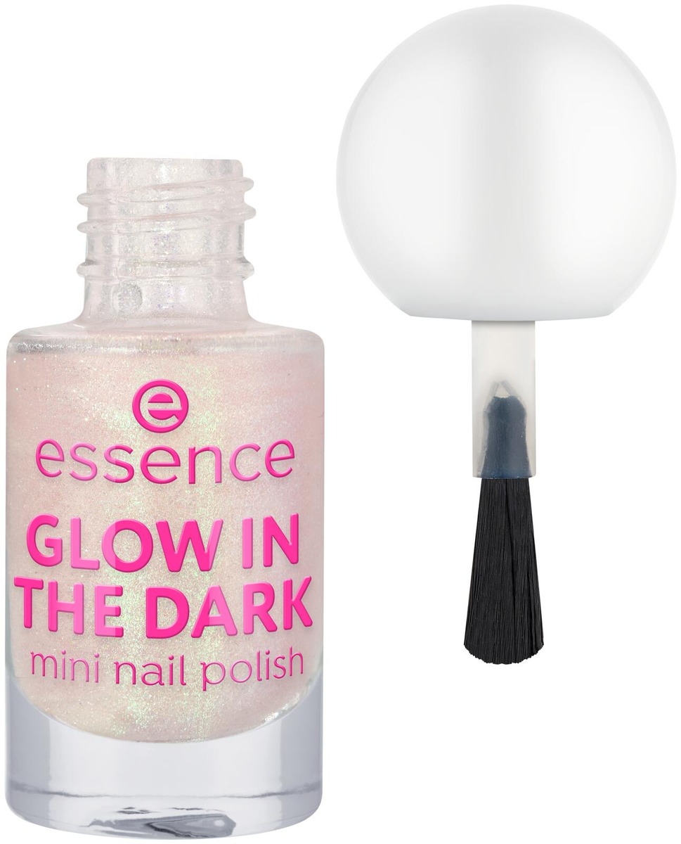 Korosta kynsiäsi essence GLOW IN THE DARK Mini Nail Polish 14:llä, vaaleanpunaisella vivahteella, jossa on sateenkaaren väreissä hohtavaa kultaista kimallusta, joka luo taianomaisen, hehkuvan vaikutelman. Tämä kimalteleva kiillotusaine antaa hohtavan säväyksen sekä päivällä että yöllä. Sileä, nestemäinen koostumus levittyy tasaisesti ja saa aikaan hohtavan lopputuloksen, joka on täydellinen sellaisenaan tai säteilevänä pintakerroksena. Kun haluat todella lumoavan pimeässä hohtavan vaikutelman, levitä vaaleisiin väreihin – erityisesti valkoiseen – saadaksesi hohtavat hiukkaset loistamaan kirkkaimpina. Pienikokoinen mutta hauska lakka muuttaa jokaisen manikyyrin säkenöiväksi.