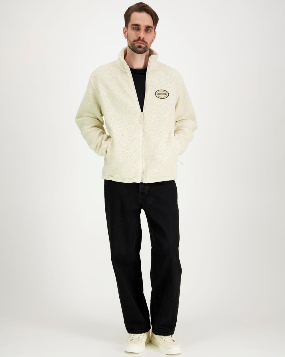 Normaalisti istuva fleece-takki vetoketjulla. Viimeistelty rintamerkillä.