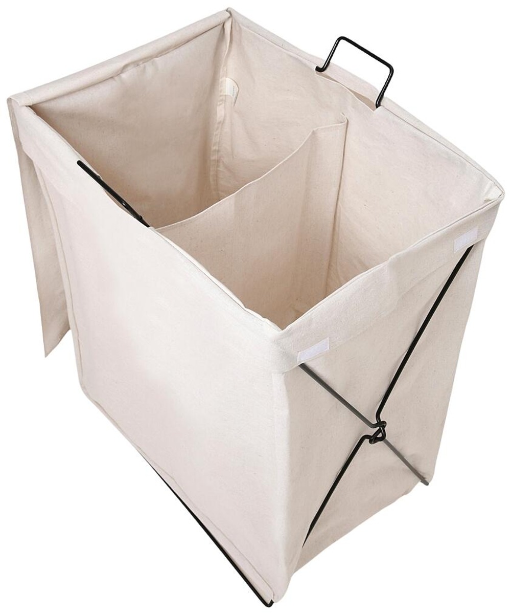 Pyykkikori, jossa on kaksi lokeroa ja tarranauhalla kiinnitettävä kansi. SKANÖR-korissa on kaksi kahvaa sivuilla, joten korin kantaminen pyykkitupaan on helppoa. Kori seisoo tukevasti metallirungon ansiosta. Mitat: Korkeus: 63 cm. Pituus: 55 cm. Leveys: 39 cm.