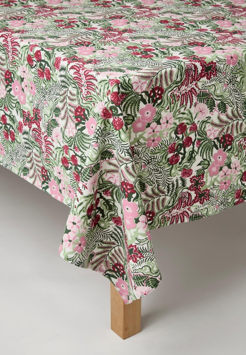 Åhléns Home Florette -pöytäliina on tyylikäs ja käytännöllinen valinta kodin ruokapöydälle. Sen kooltaan 145x250 cm oleva pinta sopii hyvin erikokoisiin pöytiin. Vihreä väri ja Florette-kuosi tuovat raikkaan ja luonnonläheisen ilmeen kattaukseen. Pöytäliina on helppohoitoinen ja kestävä, joten se soveltuu arkeen ja juhlaan.