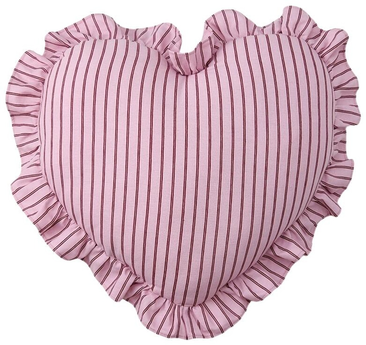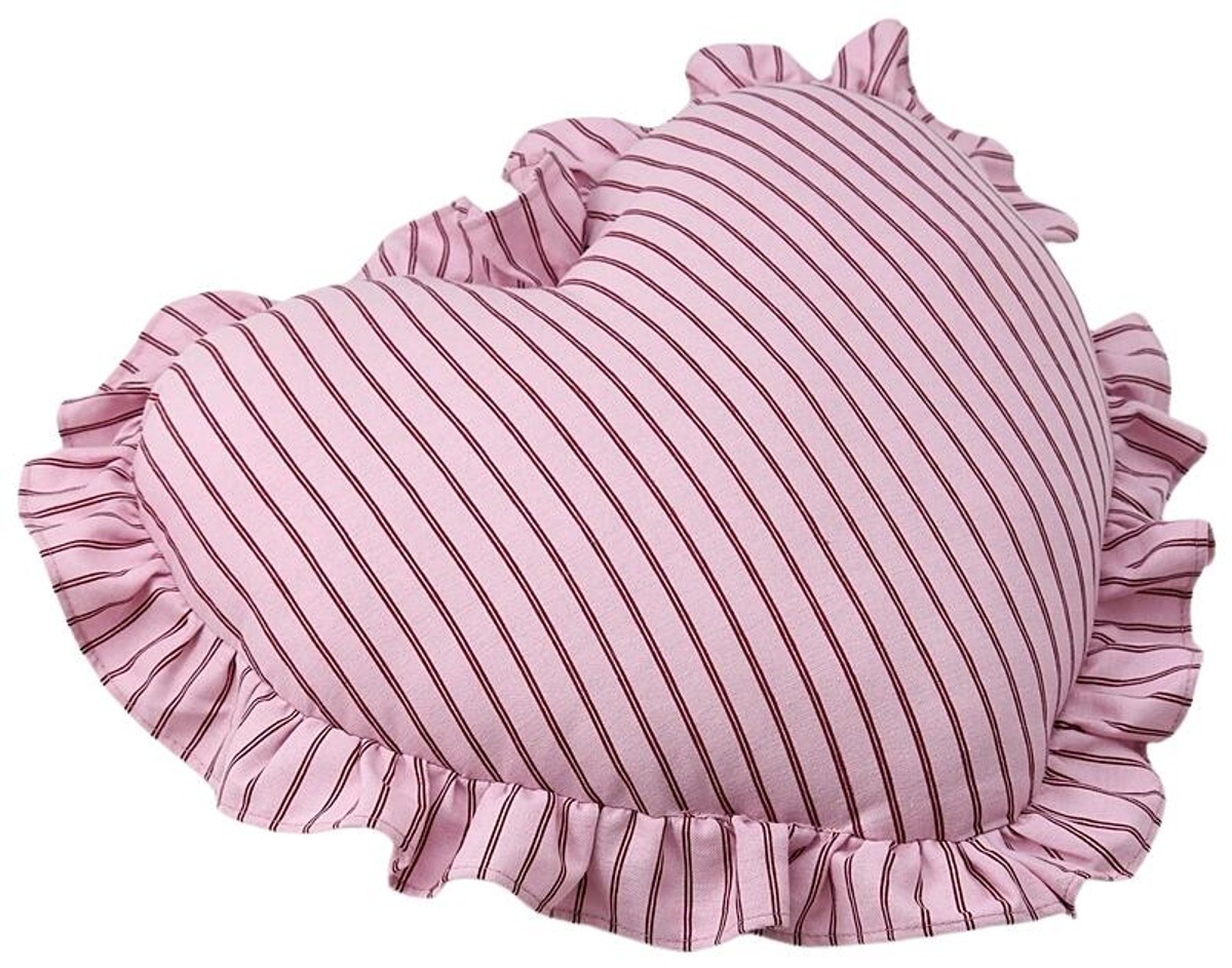 Sydämenmuotoinen raidallinen tyyny, täydellinen lahja jollekulle, josta välität. VALENTINE FRILL -tyynyssä on koristeellinen röyhelöreunus, ja se on ihastuttava sisustuselementti sohvalla, lempinojatuolissa tai sängyllä.