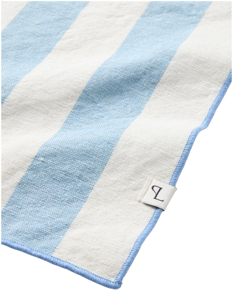Leveäraidallinen pöytätabletti, jonka reunassa on kontrastivärinen tikkaus. Pöytätabletti on valmistettu pellavasekoitteesta ja se sopii yhteen saman sarjan pöytäliinan ja keittiöpyyhkeen kanssa. Mitat: 35x45 cm