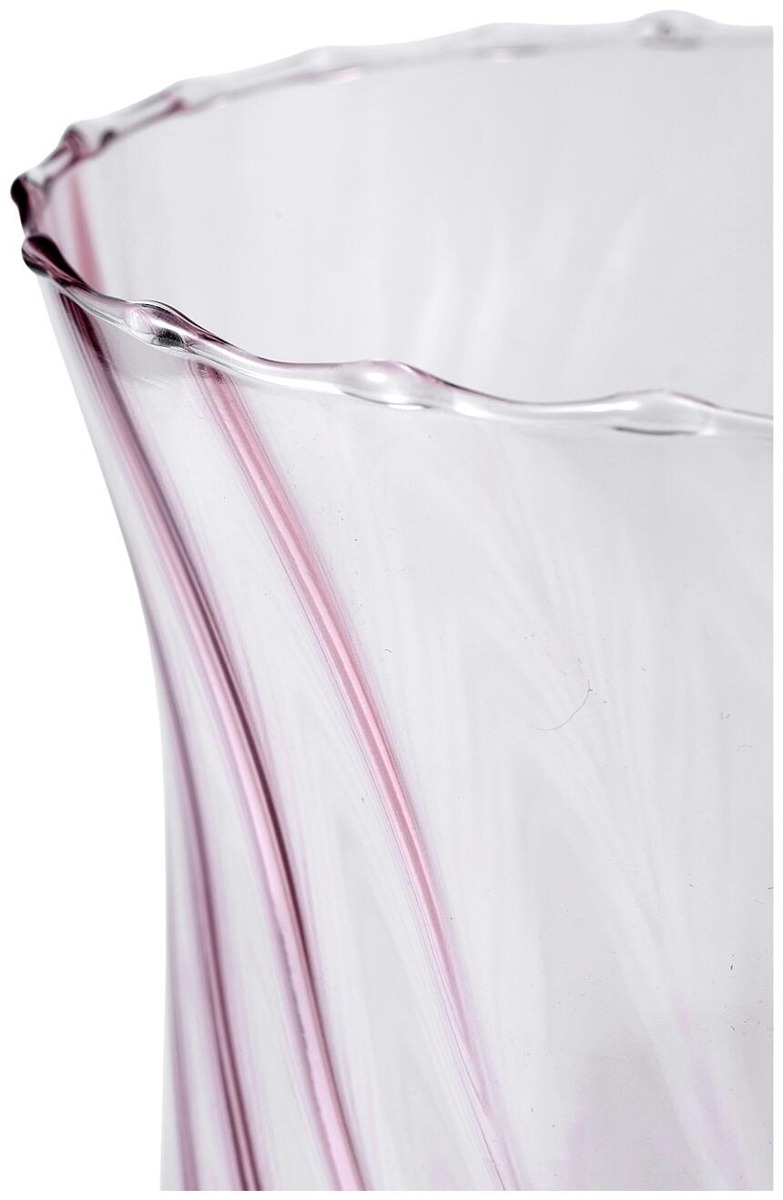 Pyöreä lasimaljakko, jossa on kierteinen kuvio ja aaltoileva yläreuna. VIOLA-maljakossa on tukeva jalusta ja leveä suuaukko, ja se on kaunis sisustuselementti tulppaanien tai muiden vastaavien kimppujen kanssa. Mitat: Korkeus: 20 cm. Halkaisija: 13,5 cm.