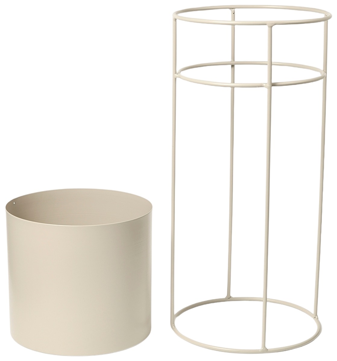 Ulkokäyttöön tarkoitettu ruukku, jossa on väriin sovitettu jalusta. Kukkaruukku on valmistettu pulverimaalatusta raudasta ja on säänkestävä. Mitat: Halkaisija: 21,5 cm. Korkeus (jalustan kanssa): 55 cm.