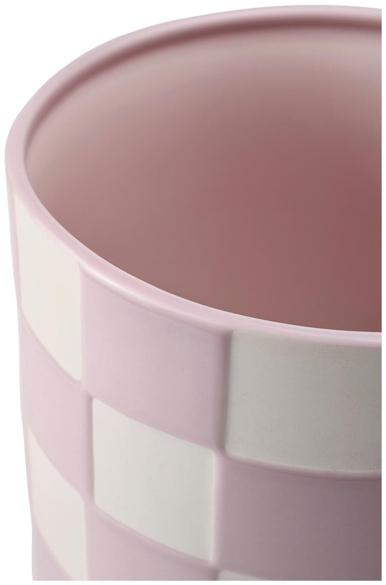 Designtorgetin shakkiruudullinen ruukku on valmistettu lasitetusta kivitavarasta. Ruukku on yksivärinen sisäpuolelta. Kiiltävä pinta. Mitat: Korkeus: 19 cm. Halkaisija: 18 cm. HUOM! Suosittelemme lautasen käyttöä ruukun alla.
