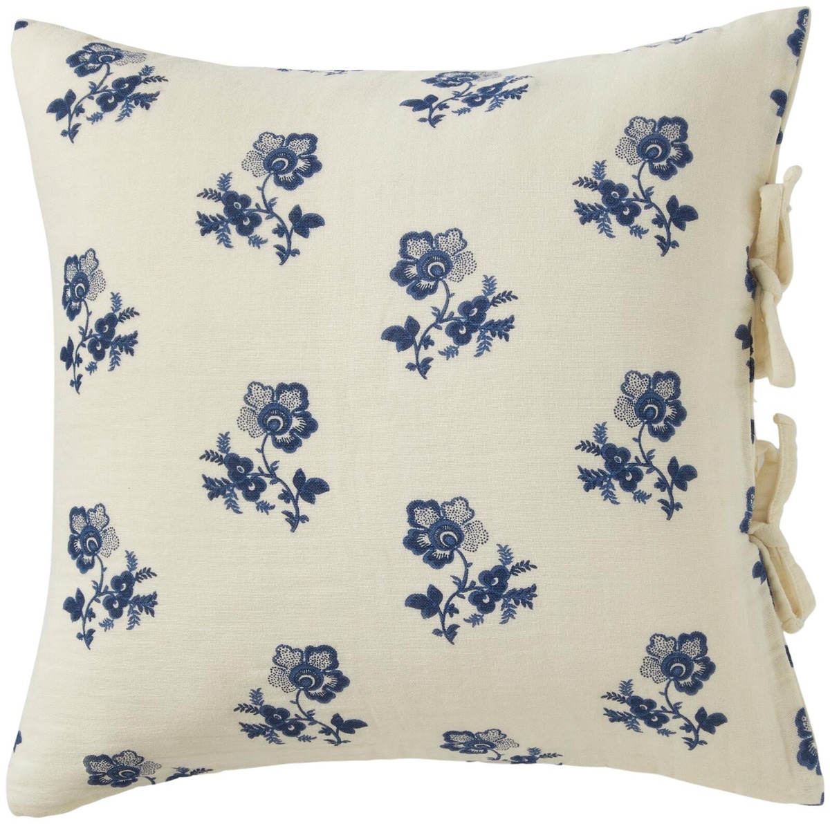 Kukkakuvioinen tyynynpäällinen puuvillamusliinia. Tyynynpäällinen on valmistettu pestystä puuvillasta ja siinä on nauhat sivussa. Sisätyyny myydään erikseen. 100 % puuvillaa. Mitat: 50x50 cm.
