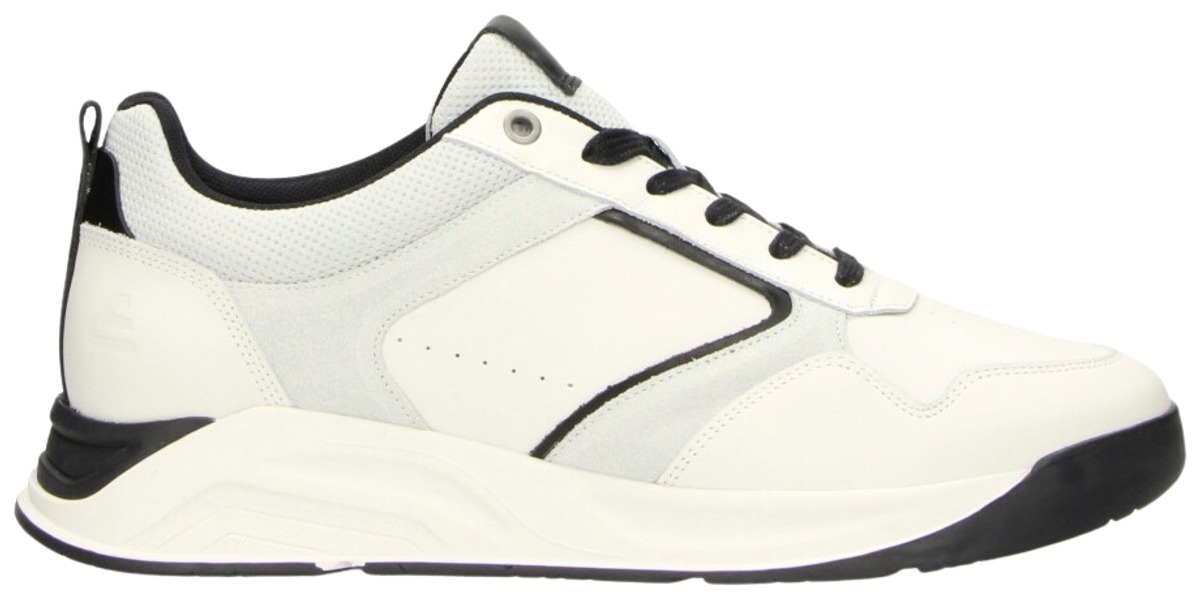 Tyylikkäät miesten sneakerit valko-mustassa väriyhdistelmässä yhdistävät nahkaa ja mokkaa päällismateriaalinaan. Kengät tuntuvat mukavilta koko päivän pehmustetun sisäpohjan ja kevyen pohjan ansiosta.