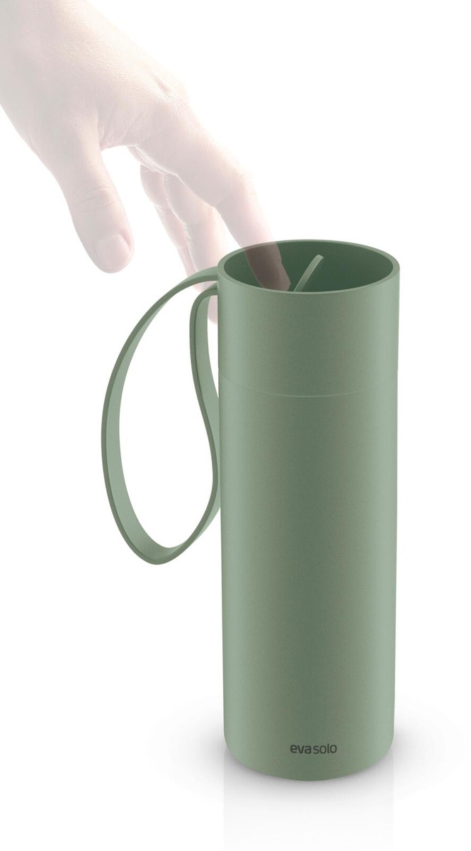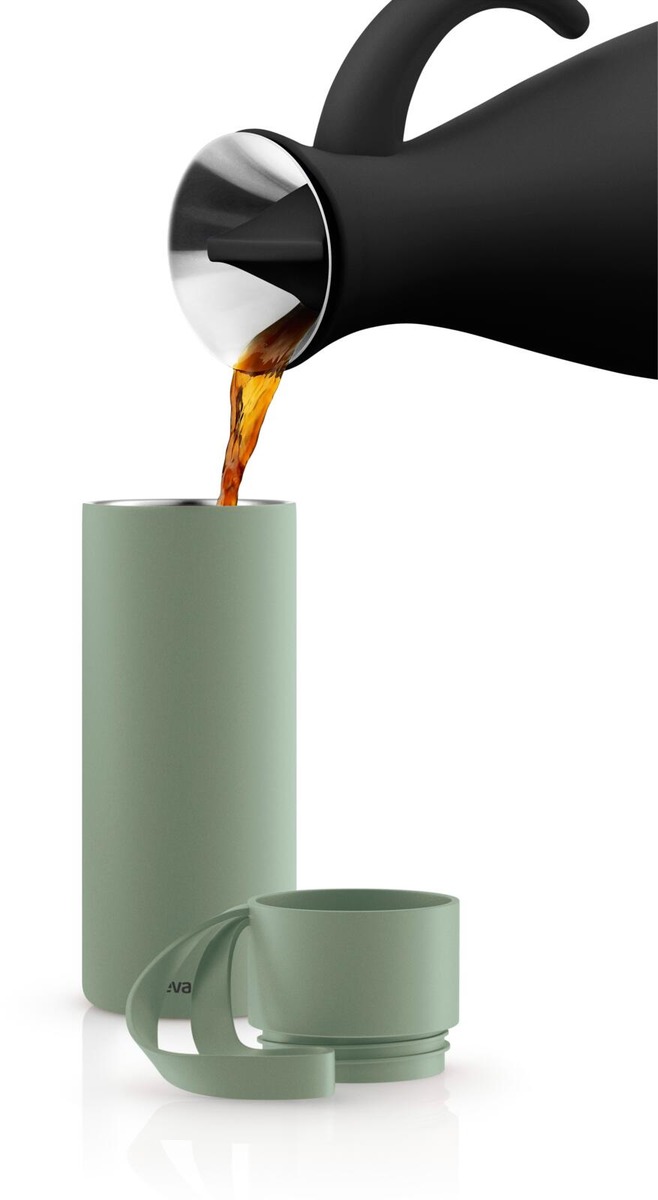 Eva Solon To Go -termosmuki pitää juoman kuumana jopa 6 tuntia ja kylmänä jopa 12 tuntia. Rosterinen termosmuki kestää kovaakin käyttöä. Muki sulkeutuu täysin tiiviisti, joten se on helppo ottaa mukaan vaikka laukkuun tai autoon. Muki sopii useimpien autojen mukitelineisiin (halkaisija 7 cm) ja click open -kannen ansiosta avaaminen ja sulkeminen käy kätevästi yhdellä kädellä. Korkissa on kätevä lenkki, joka helpottaa termosmukin mukana kantamista esimerkiksi kaupungilla kävellessäsi. Kestää konepesun. Vetoisuus 0,35 l.