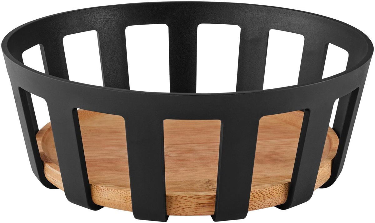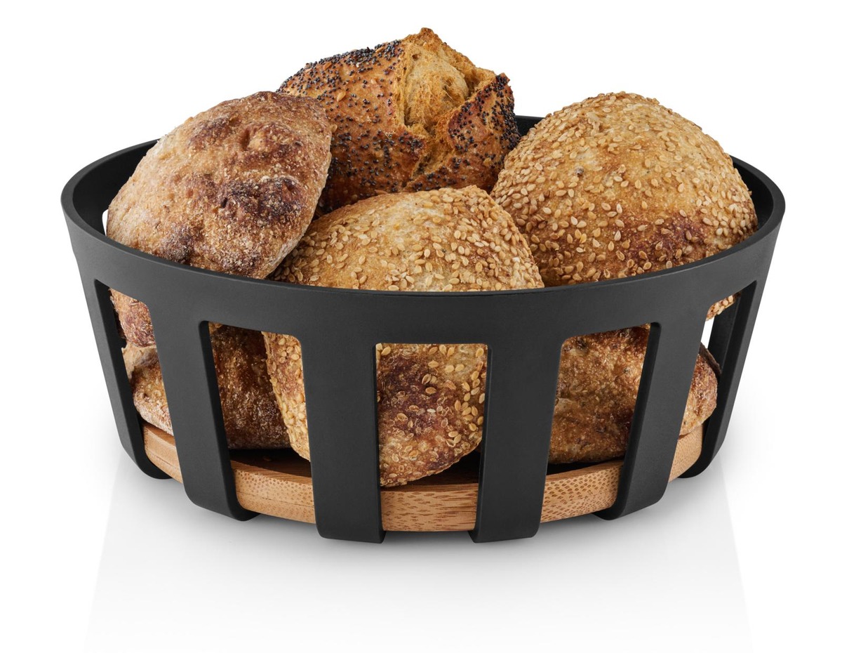 Upeassa Nordic Kitchen -leipäkorissa toistuu sarjan tuotteille ominainen mattamustan ja lämminsävyisen puun yhdistelmä. Tuoreilla sämpylöillä täytettynä leipäkori on aamiais- tai brunssipöydän katseenvangitsija, mutta se sopii erinomaisesti myös esimerkiksi hedelmäkoriksi. Leipäkori on helppo puhdistaa kostealla liinalla pyyhkimällä. Bambusta valmistettu pohja pysyy kauniina, kun se öljytään säännöllisesti. Halkaisija 25 cm.