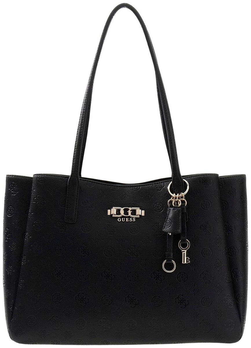 Guess pionikuvioitu olkalaukku. Päältä aukeaa kaksi taskua painonapilla ja yksi vetoketjulla. Laukun takapuolella pieni vetoketjutasku. Laukun mukana tulee irroitettava laukkukoru.