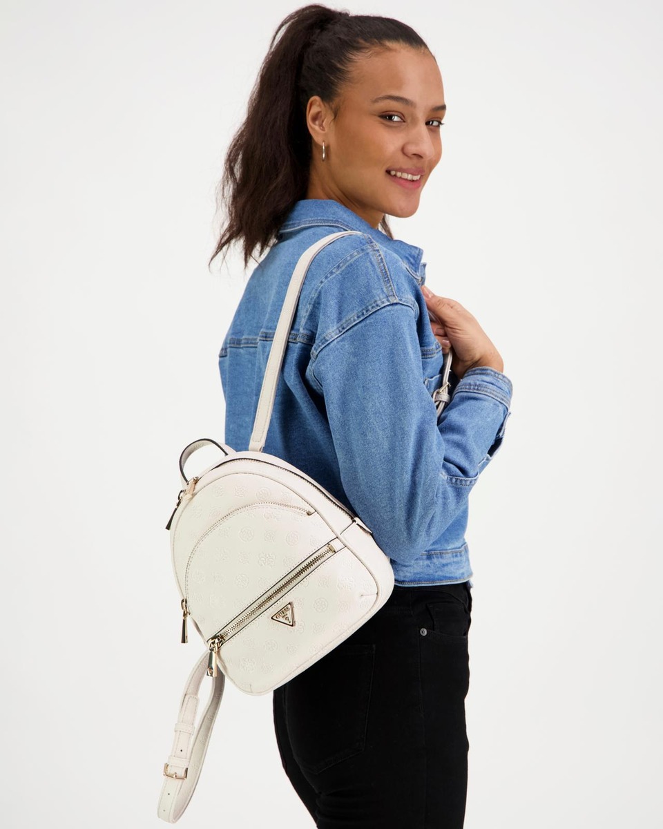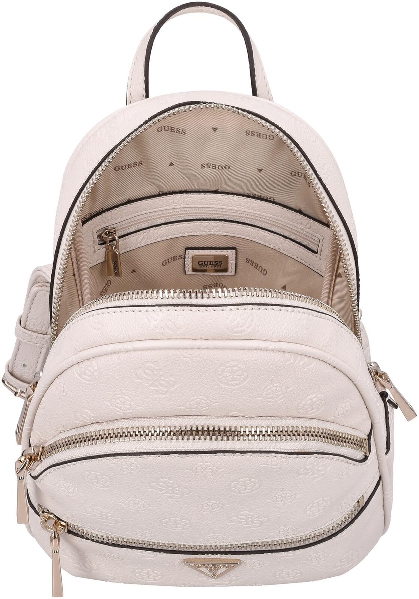 Pieni logokuvioitu reppu, jossa säädettävät kantohihnat. Repussa on kolme vetoketjutaskua.