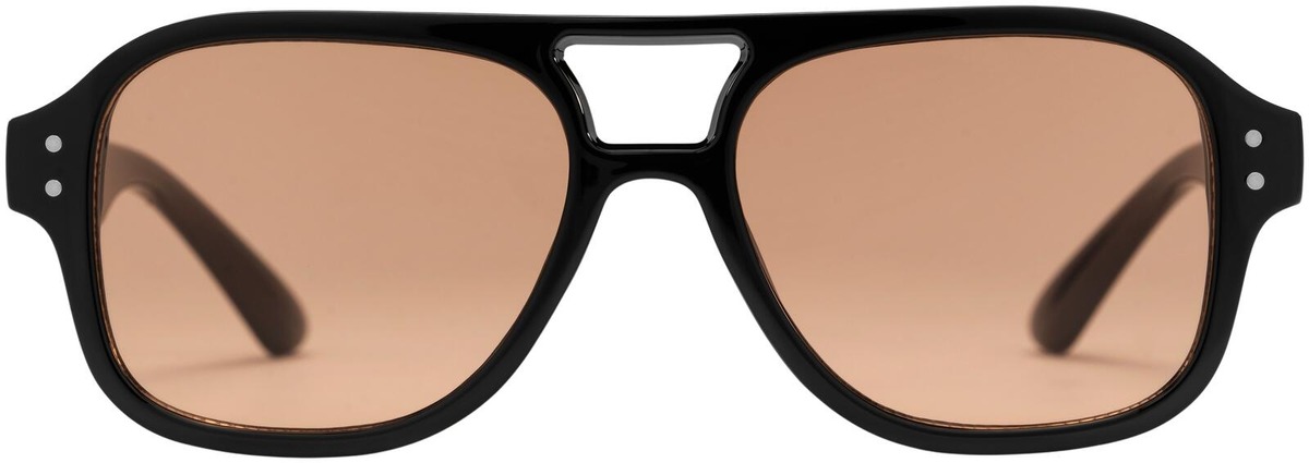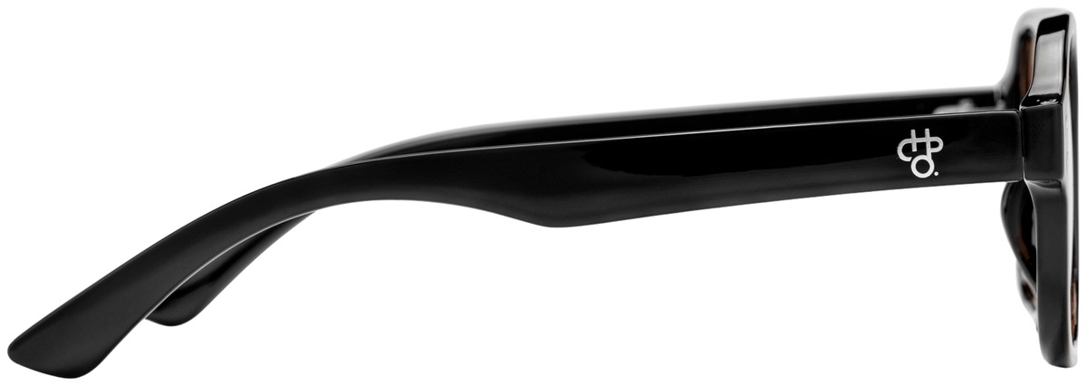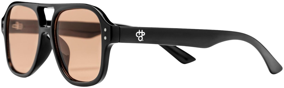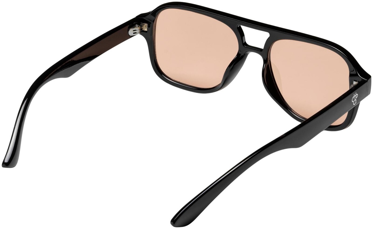 Cocas oranssisävyisillä linsseillä ja mustalla kehyksellä, joka on valmistettu 100 % kierrätetystä muovista.