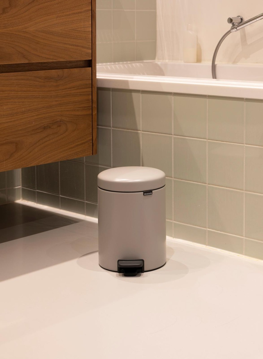 Brabantian 5 litran NewIcon-poljinroskakori ei ole vain tyylikäs ja hygieeninen, vaan myös luotettava avustaja. Vahva ja aina tukeva liukumattoman pohjan ja kallistumisenestojärjestelmän ansiosta. Kansi on hajuntiivis, sulkeutuu pehmeästi ja avautuu kevyestäkin jalan painalluksesta. Pieni ripaus ajatonta muotoilua kylpyhuoneeseen, WC tai lastenhuoneeseen - tai mihin tahansa muualle, johon tarvitaan kätevää pientä roskakoria!