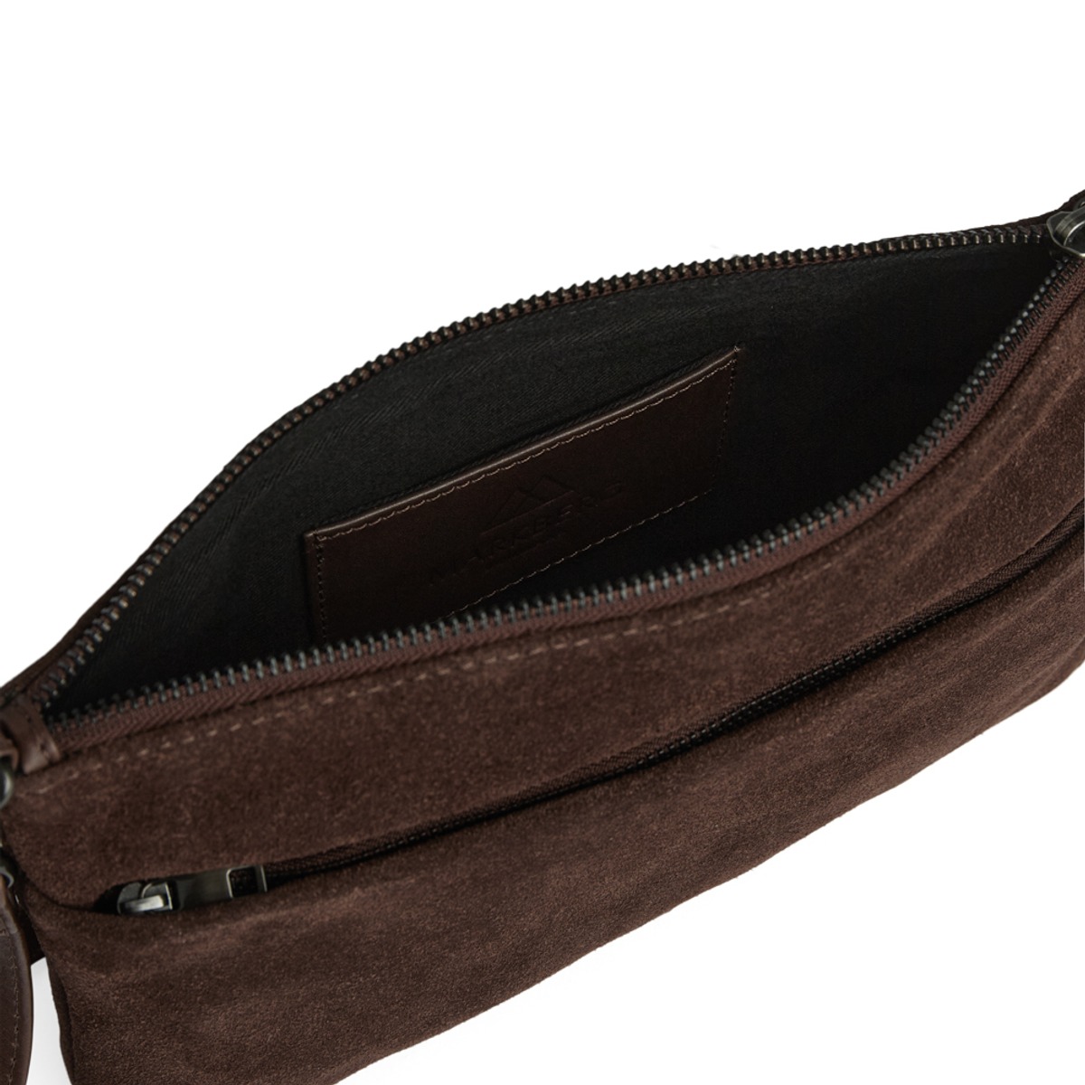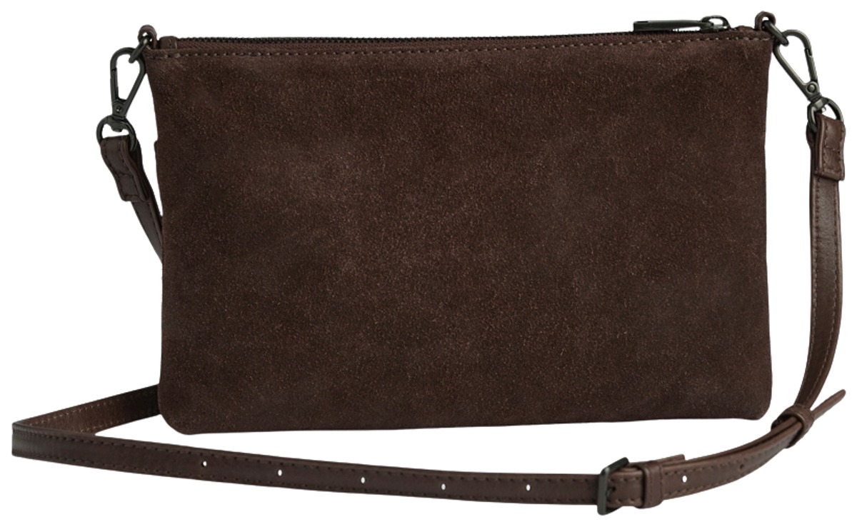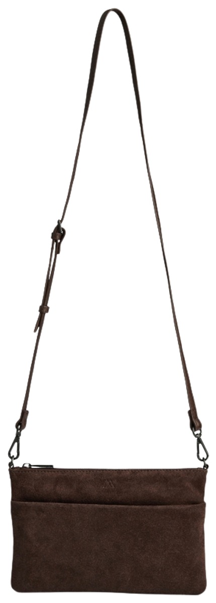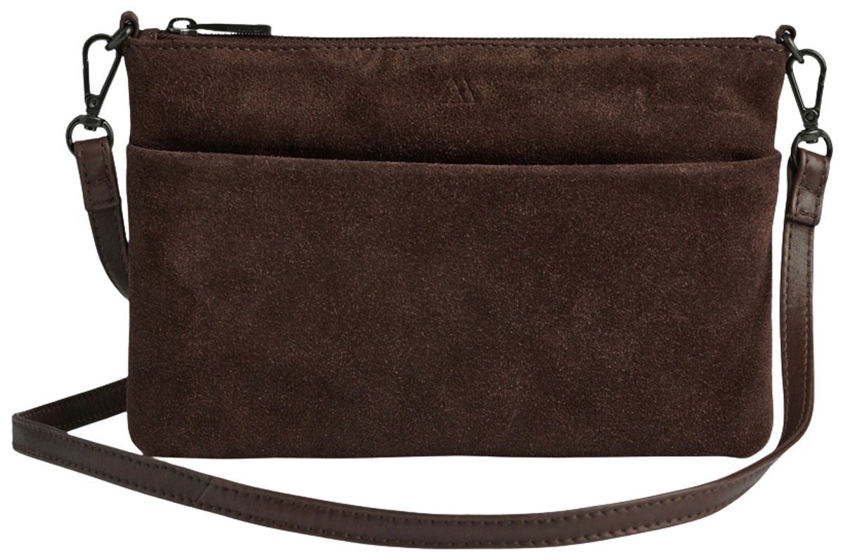 Mokkanahkainen olkalaukku suljetaan vetoketjulla. Sisällä korttitasku, edess vetoketjullinen tasku. Irrotettava säädettävä olkahihna pintanahkaa.