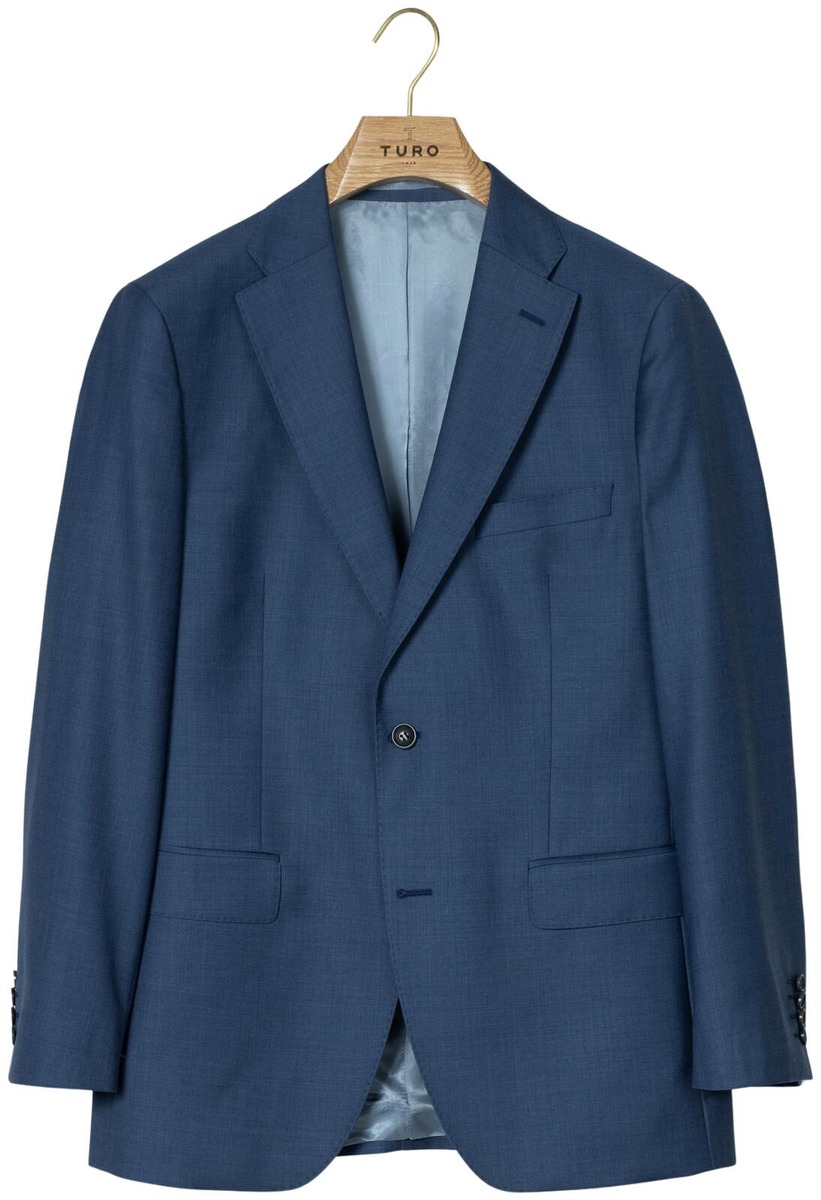 Sinisen puvun takki. Erinomainen pukuvalinta juhliin ja edustustilaisuuksiin. Italialaisen villakankaan hienostunut kiilto ja miellyttävä tuntu takaavat puvun edustavan vaikutelman. Villan luontaisiin ominaisuuksiin kuuluu hyvä lämmönsäätelykyky ja hengittävyys, sekä miellyttävä tuntu ihoa vasten. Athlete fit -leikkaus on tehty sporttiselle kehotyypille. Siinä on esimerkiksi tilaa leveille hartioille ja lihaksikkaille reisille, mutta vyötärö pysyy silti kapeana. Takin pituus koossa 52 on 76cm.