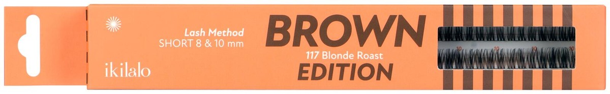 Ikilalo Lash Method Brown Edition -ripsillä luot jopa kuusi päivää kestävät ripset helposti kotona! Kevyet ripsiosiot kiinnitetään suoraan omien ripsien alle ilman painon tunnetta tai luonnonripsien rasitusta. 117 Blonde Roast on luonnollisen pehmeä malli kauniilla vaaleanruskealla sävyllä. Yhden pakkauksen ripsiosioista saat tehtyä keskimäärin 5 ripsiparia. Pakkaus ei sisällä kiinnitysaineita.