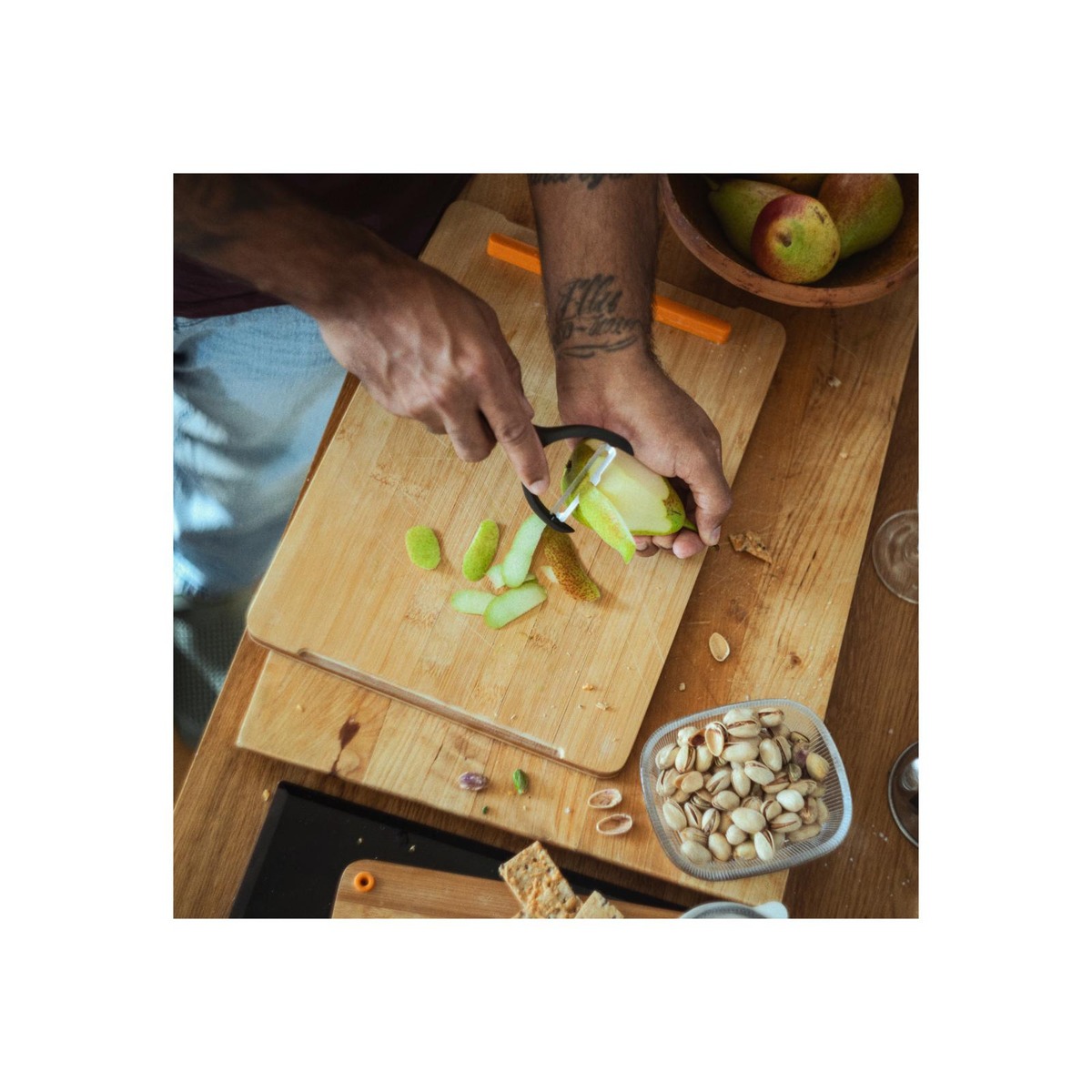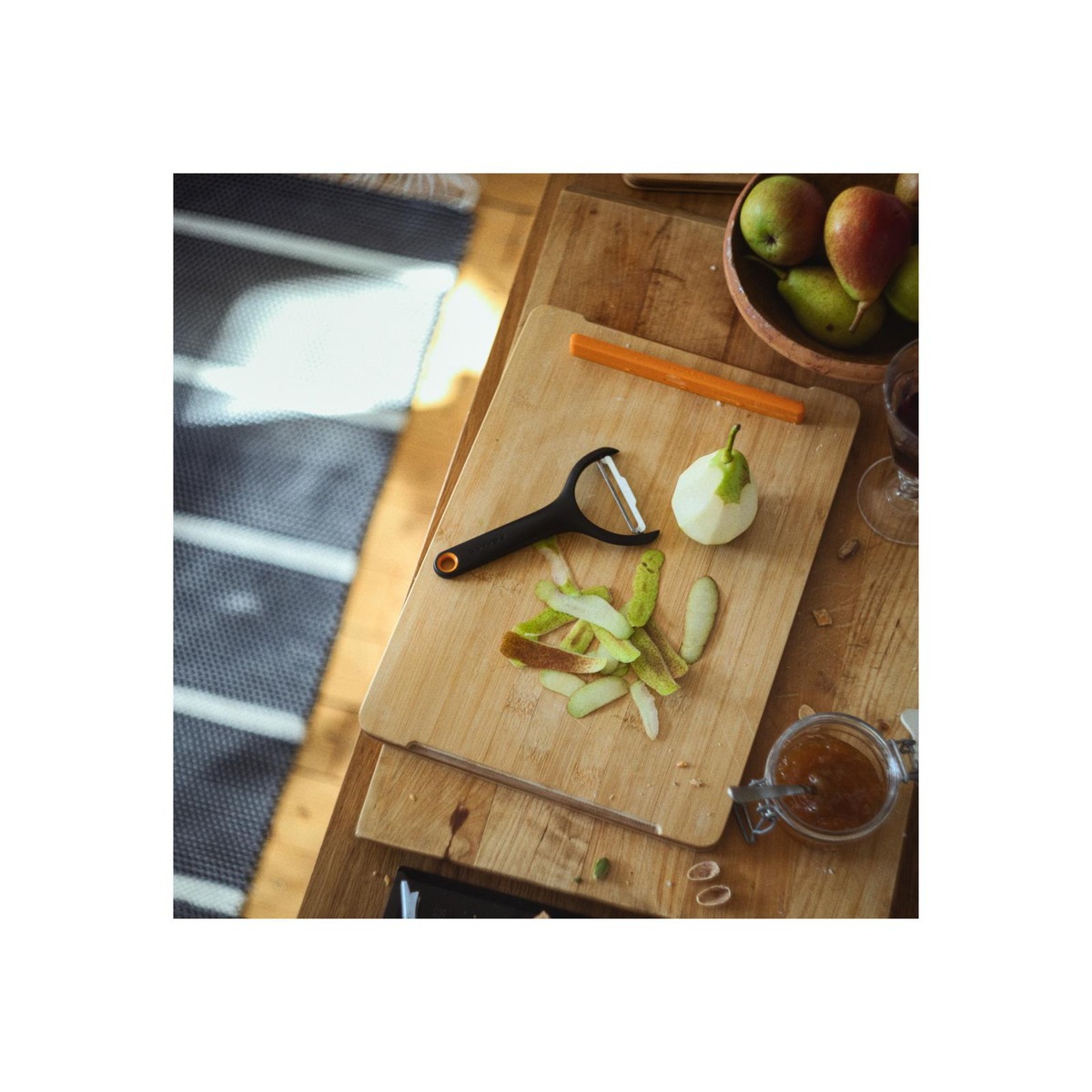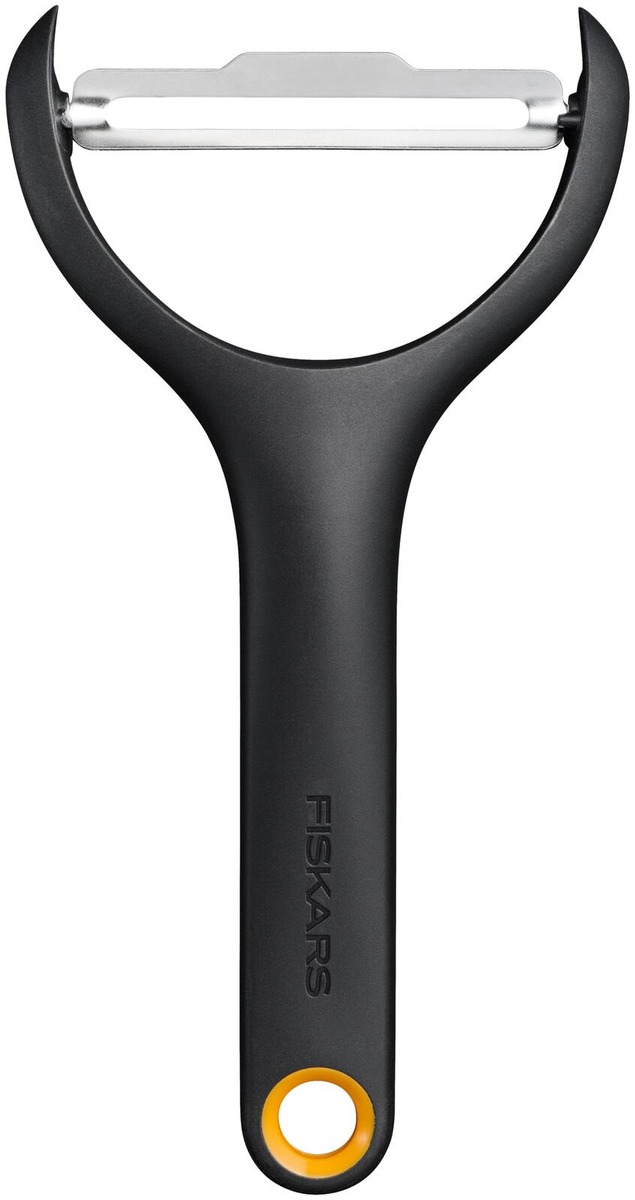 Y-mallinen, älykkäästi muotoiltu Fiskars Functional Form -vihanneskuorija on joka kodin peruskeittiöväline, joka tarjoaa helppoutta ja mukavuutta esimerkiksi porkkanoiden, perunoiden ja kurkkujen kaltaisia vihanneksia kuoriessa. Pyörivällä terällä varustettu kuorija myötäilee ruoka-aineen muotoa, taaten tarkan ja tasaisen lopputuloksen pienellä vaivalla. Ergonominen kahva tarjoaa mukavan otteen ja tekee käytöstä vaivatonta vihanneksen kokoon katsomatta. Kuorija on pesukoneenkestävä. Kompaktin kokonsa ansiosta kuorija on helppo säilöä vetolaatikkoon, mikä tekee siitä lyömättömän apurin arjen ruoanlaitossa.