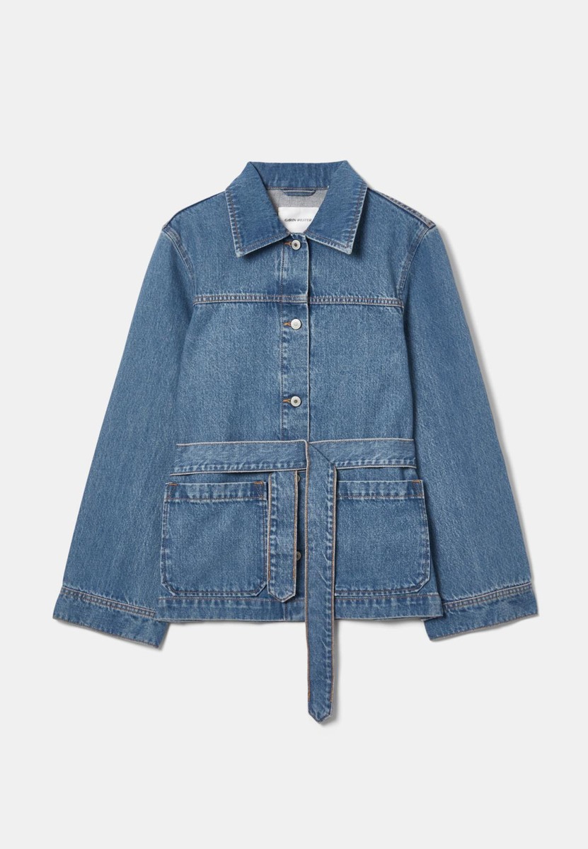 YVIS on 100 % puuvillasta valmistettu denimtakki, jossa on vyötärölle solmittava nauha. Kaulus ja nappikiinnitys sekä kahdet etutaskut viimeistelevät klassisen farkkuilmeen, ja rennosti istuva malli suorine hihoineen toimii monikäyttöisenä kerrospukeutumisessa arjesta viikonloppuun.