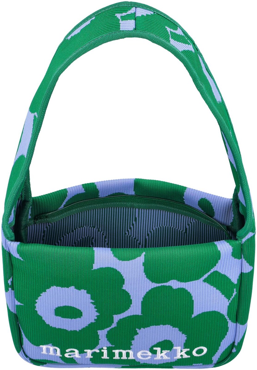 Knitted Shoulderbag -olkalaukussa on jacquard-kudottu Unikko-kuosi. Ryhdikkäässä laukussa on raidallinen pinta. Laukussa on leveä olkahihna, vetoketjusuljenta ja brodeerattu Marimekko-logo etupuolella. Tuote on valmistettu 100-prosenttisesta kierrätetystä polyesterista. Luovuutta ja rohkeutta symboloiva Unikko syntyi aikana, jolloin Marimekon kuviomaailmaan ei juuri kuulunut kukkia. Maija Isolaa kukka-aihe kuitenkin kiinnosti, ja hän päätti suunnitella kokonaisen sarjan uudenlaisia vahvoja kukkakuoseja.