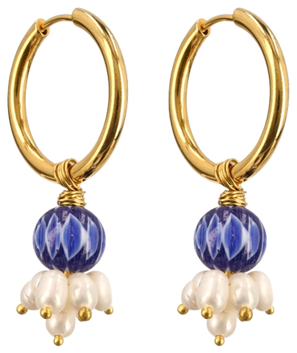 Yksinkertaisen kauniit korvakorut, joiden kestävä ruostumattomasta teräksestä valmistettu rengasosa ja sinivalkoiset helmet sekä luonnon helmet luovat tyylikkään kokonaisuuden. Osat ovat irrotettavat. Kaikon Neeja -korvakorut on valmistettu käsityönä Nepalissa.