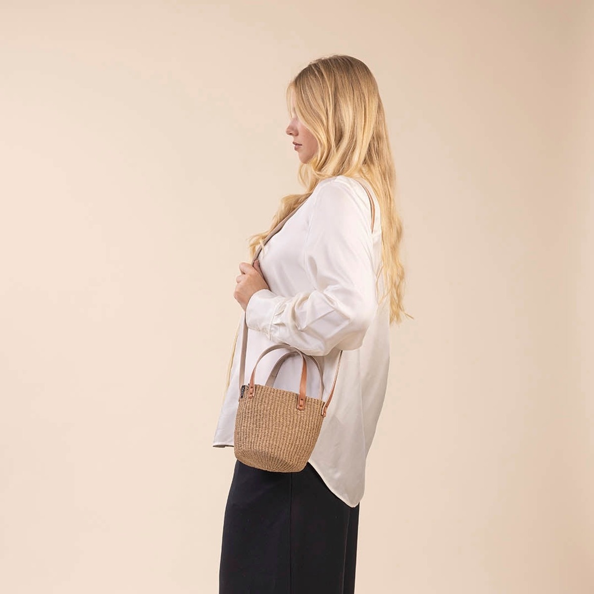 XS Shopper – Ruskea paperinen olkalaukku kahdella kahvalla. Tämä pieni mutta käytännöllinen laukku on täydellinen kumppani sekä arkeen että erityistilaisuuksiin. Lämpimän ruskean sävyinen käsin kudottu laukku lisää asuusi ripauksen luontoaiheista eleganssia. Sekä lyhyiden että pitkien kantokahvaiden ansiosta laukkua voi kantaa kädessä tai mukavasti olkapäällä. Kompakti koko sopii erinomaisesti vain välttämättömien tavaroiden kantamiseen, ja kestävä mutta kevyt rakenne on valmistettu FSC-sertifioidusta paperinarusta. Korkeus 16 cm, leveys 15 cm.
