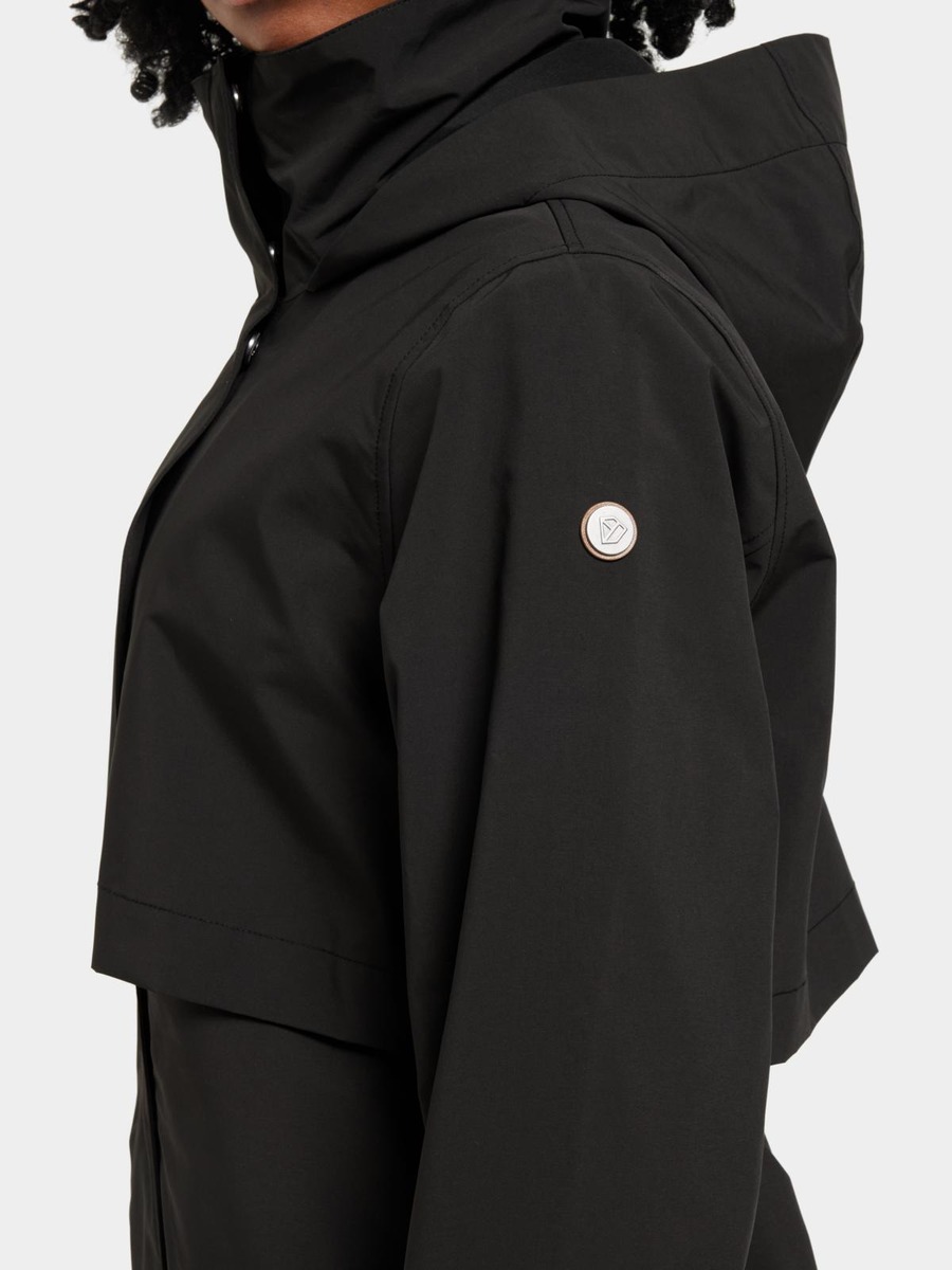 Suoralinjainen malli ja säädettävä vyötärön kiristysnauha takaavat yksilöllisen istuvuuden. Kiinteä huppu ja sisäpuolinen pystykaulus suojaavat kylmältä, ja napeilla suljettavat sivutaskut tarjoavat käytännöllistä säilytystilaa. Hihansuiden napit mahdollistavat istuvuuden säätämisen ja pitävät lämmön sisällä. Parkassa on ympäristöystävällinen, PFC-vapaa vettähylkivä viimeistely.