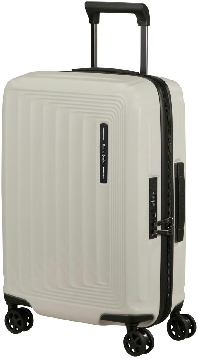 Samsonite Nuon Spinner 55 EXP on tyyilkäs laajennettava nelipyöräinen lentolaukku. Valmistettu laadukkaasta polykarbonaatista. Sisävuori valmistettu kierrätysmateriaalista. Laukun tuplapyörät ovat värinää vaimentavat.