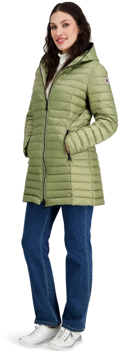 Tyylikäs ja jo klassikoksi muodostunut kevytuntuvatakki. Suosittelemme ottamaan tuotteesta isomman koon, kun normaalisti, koska takissa on hieman normaalia kapeampi mitoitus. Untuvatakki on lämpimämpi päällä, kun se on oikeankokoinen. Takin pituus koossa M on noin 80 cm. Mallissa on kätevä kaksisuuntainen musta vetoketju, joka ulottuu kiinteän hupun yläosaan asti, sekä vetoketjulliset sivutaskut. Täyte on ihanan pehmeä ja kevyt: 90 % untuvaa ja 10 % höyhentä. Mukana tulee kätevä säilytyspussi, jonka avulla takki on helppo pakata pieneen tilaan.