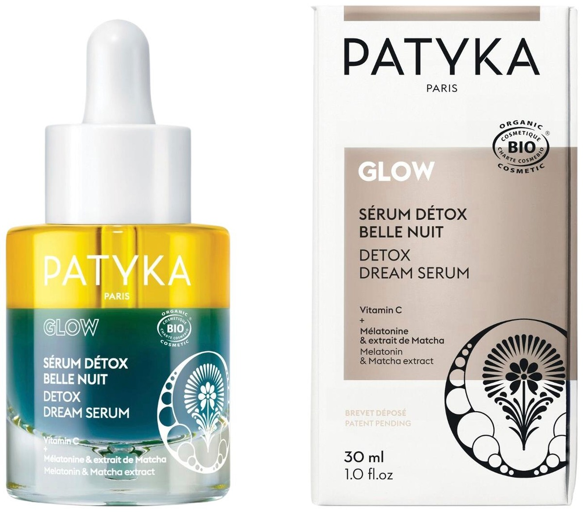 Yö on iholle erityisen tärkeä hetki, sillä nukkuessasi iho käynnistää uudelleen tärkeät toimintonsa. Tämä kronobiologinen prosessi kuitenkin häiriintyy elämäntapojemme vuoksi, erityisesti sisäisen ja ulkoisen stressin takia. Seurauksena iho näyttää samealta, epätasaiselta ja väsyneeltä. PATYKA:n edistyneen tutkimustyön tuloksena syntynyt Detox Dream Serum on todellinen yöaikaan vaikuttava ihon kirkastaja: tehokkaan melatoniinin ja matcha-uutteen yhdistelmän ansiosta se kirkastaa epidermiksen poistamalla oksidatiivisia toksiineja, jotka samentavat ihoa. Aamulla iho näyttää raikkaalta ja näkyvästi kirkkaammalta.