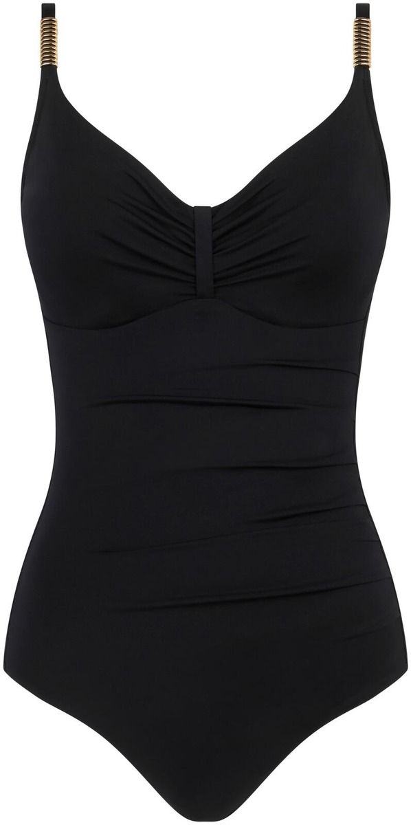 Elegantti uimapuku, joka yhdistää tuen, mukavuuden ja hienostuneen tyylin. Pehmeä ja joustava materiaali takaa miellyttävän istuvuuden ilman t-paitamallista rakennetta. Kaarituet muotoilevat ja keskittävät rinnat kauniisti, korostaen luonnollista linjaa.Etuosan muotoileva vuori ja laskostus luovat imartelevan ja viimeistellyn siluetin.Säädettävät olkaimet ja kultaiset yksityiskohdat tuovat lisäylellisyyttä. Valmistettu korkealaatuisesta italialaisesta kankaasta, joka kestää käyttöä ja säilyttää muotonsa.